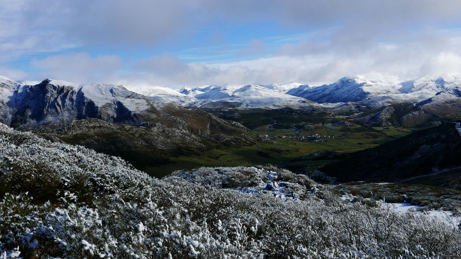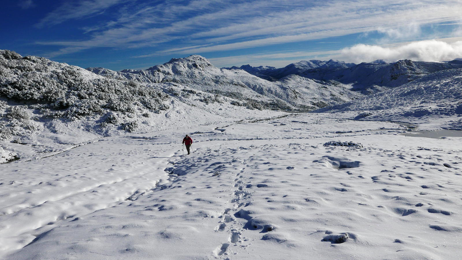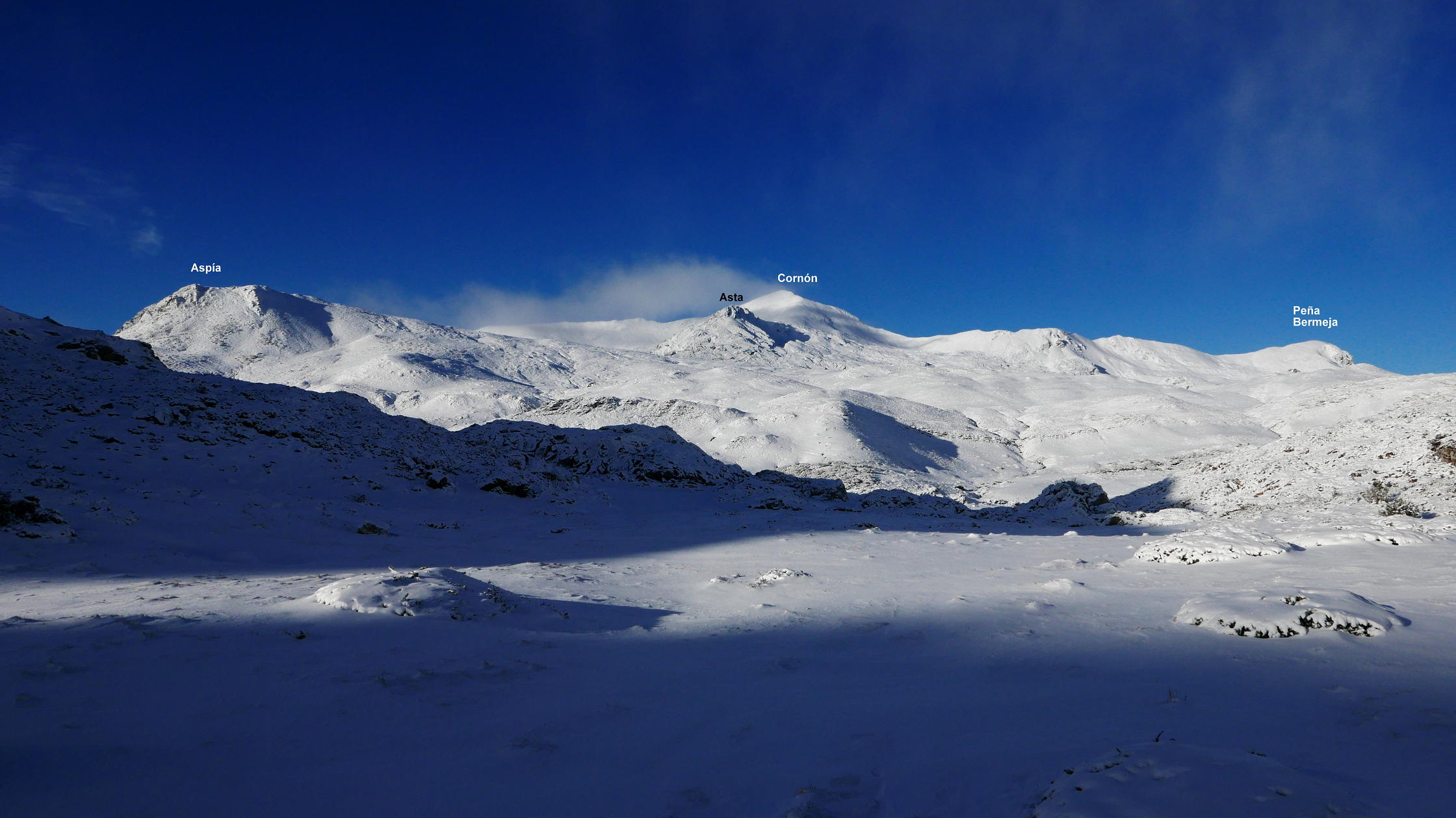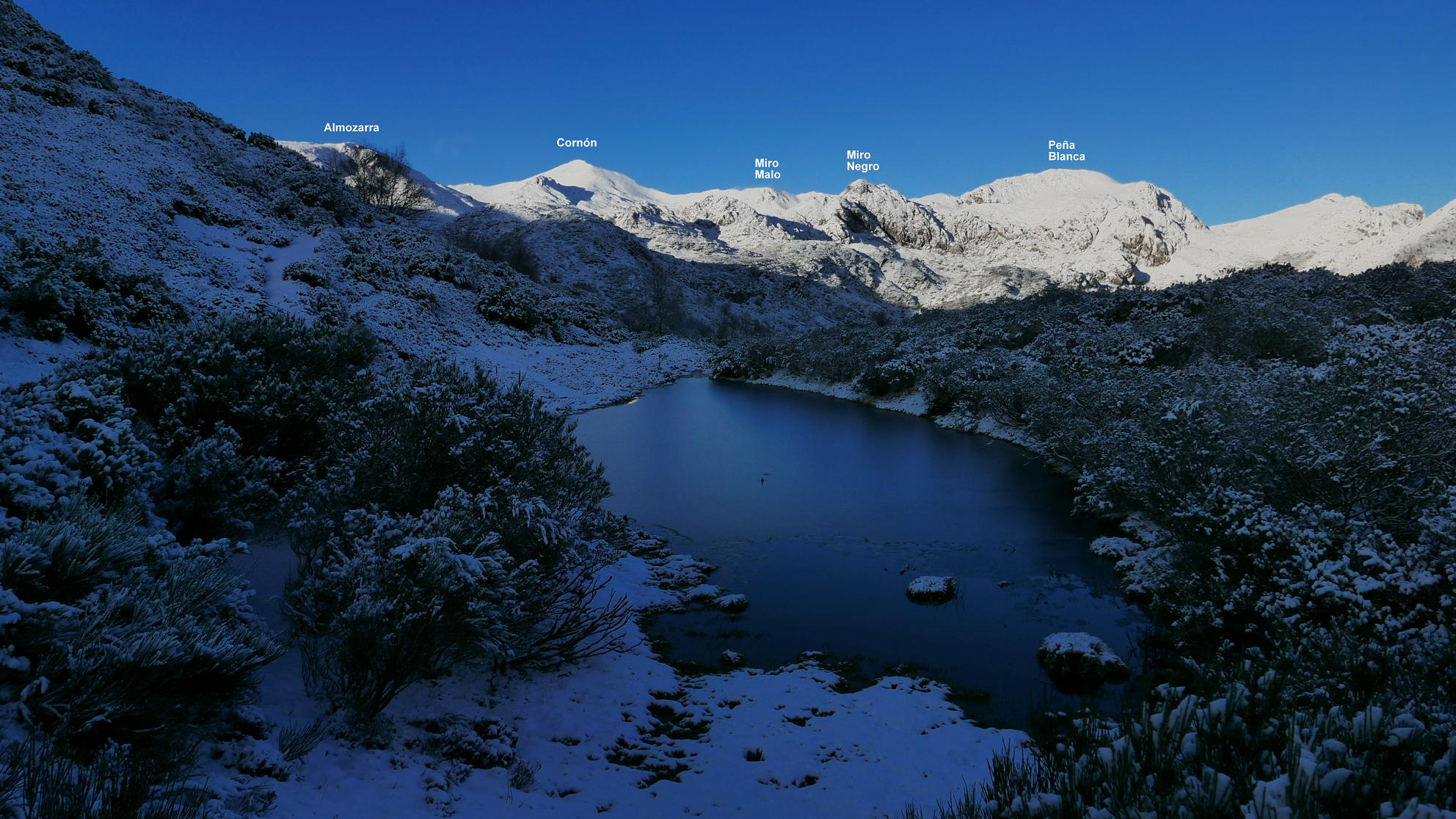 Otra vez se me resiste el Cornón. El invierno pasado un intento frustrado desde Villar de Vildas y ahora una ruta más corta y sencilla desde el Puerto de Somiedo. Las suaves, por no decir calurosas, temperaturas de este mes de diciembre, me hicieron pensar que apenas habría nieve; pero resulta que la tarde pasada y esta noche han llegado precipitaciones y bajada de temperaturas y encontramos nieve en casi todo el recorrido. De todas formas, la mañana es espléndida, totalmente despejada aunque con una buena helada a primeras horas.