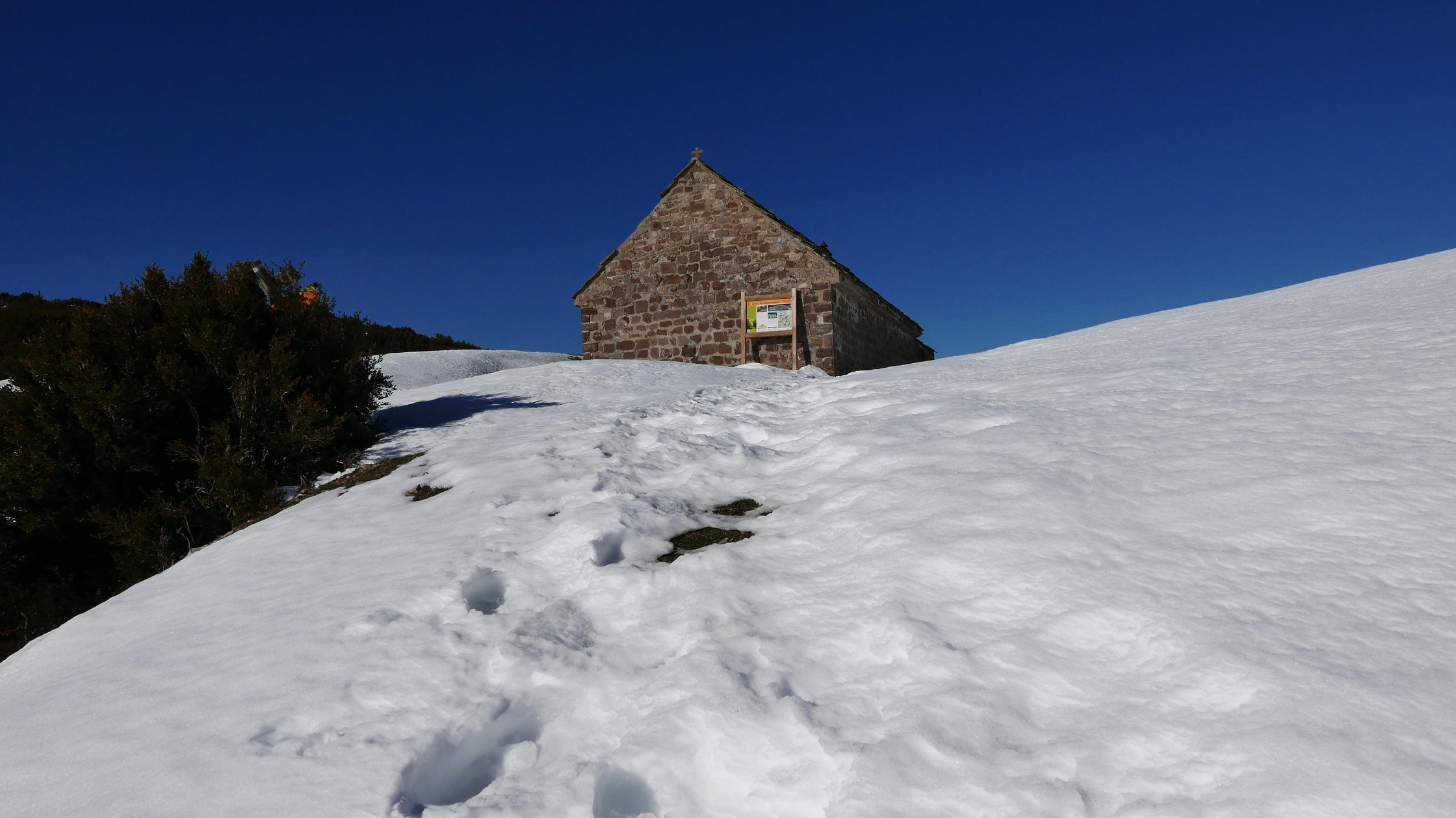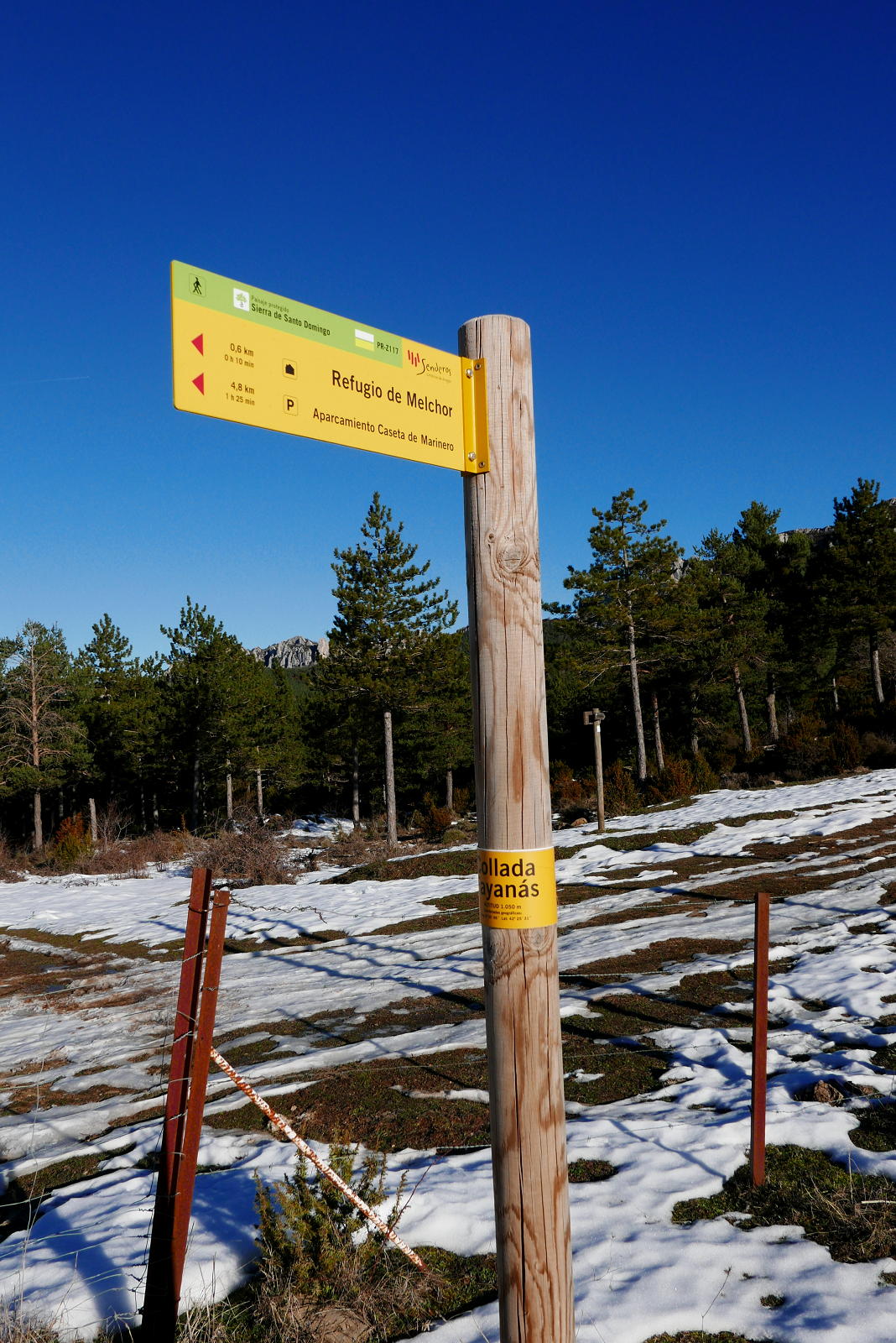 Su ascenso no presenta problemas y el recorrido está muy bien señalizado. Podría considerarse senderista si no fuera por la longitud de casi 19km. En esta ocasión todavía se conserva bastante nieve helada que dificulta un poco la progresión.