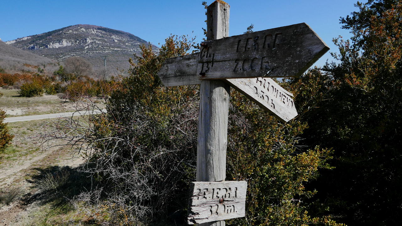 El valle de Romanzado (entre Castillonuevo y Bigüézal) discurre de este a oeste, al norte de la sierra de Leire y al sur de la sierra de Illón, así que aprovecho para hacer dos ascensiones en estas sierras exteriores del Pirineo navarro, partiendo ambas del aparcamiento de la Tejería y siguiendo, en parte, la Cañada de los Roncaleses (GR-13), vieja ruta de trashumancia por la que los pastores roncaleses descendían hacia el valle del Ebro. Lástima que esté sin señalizar, al menos en los tramos de esta zona, salvo algún hito de vez en cuando.