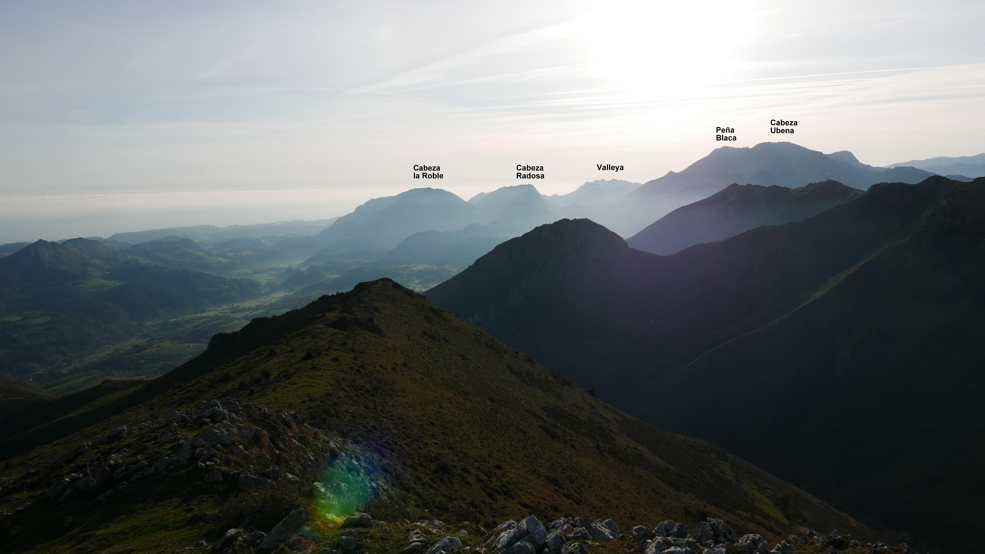 Sierra de Cuana, Sierra de la Cubeta, Sierra de Hibeo, Sierra de Cuera, se suceden paralelas a la costa Oriental asturiana, al este del río Sella, separadas menos de 10 km en línea recta del mar, por lo que sus picos son siempre buenos miradores tanto de la costa como de los Picos de Europa. Aprovecho este tiempo excelente para hacer un par de excursiones por esta zona, la primera al pico Hibeo o Cabeza Juralista, cota más alta de la Sierra de Hibeo.
