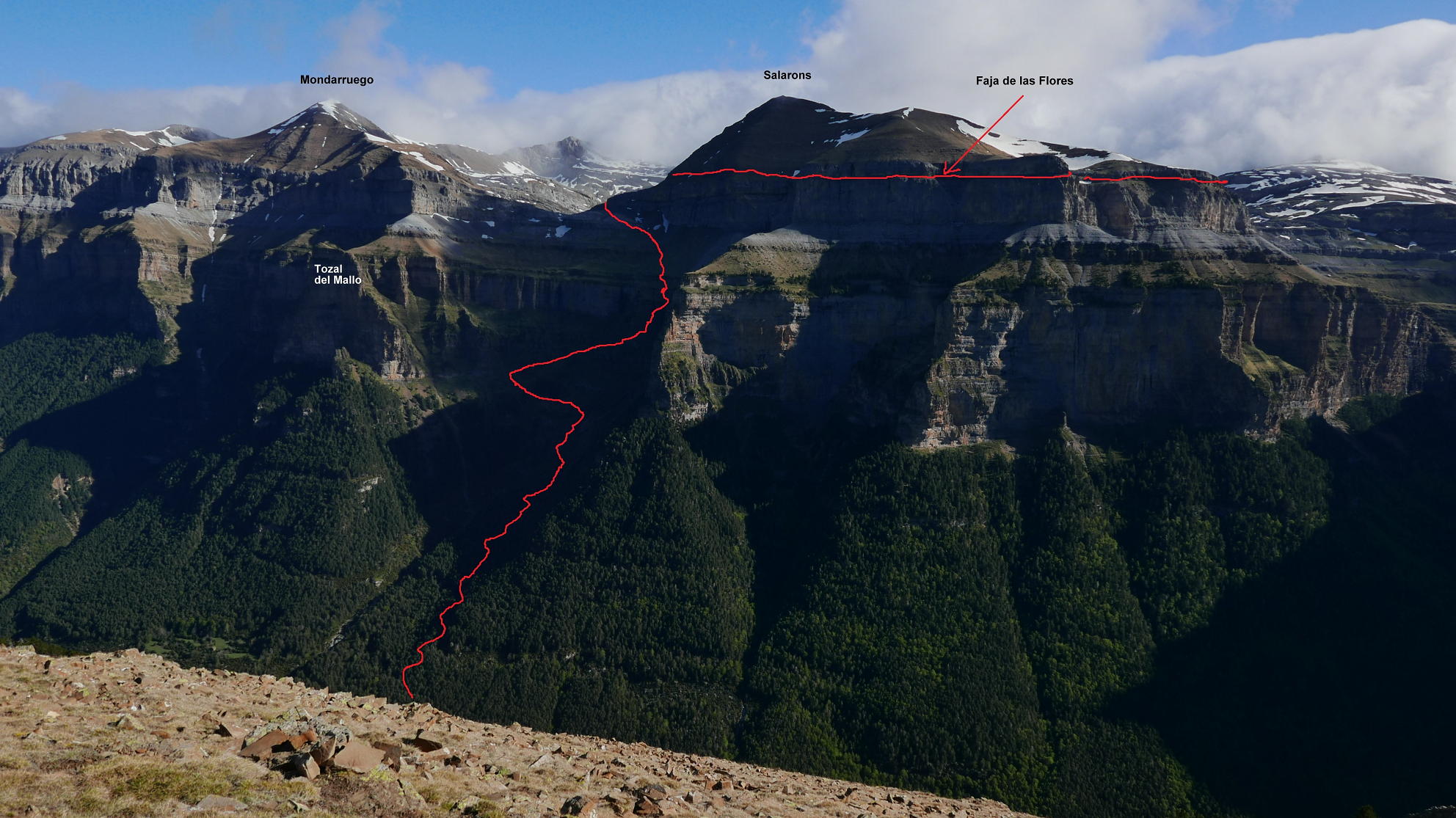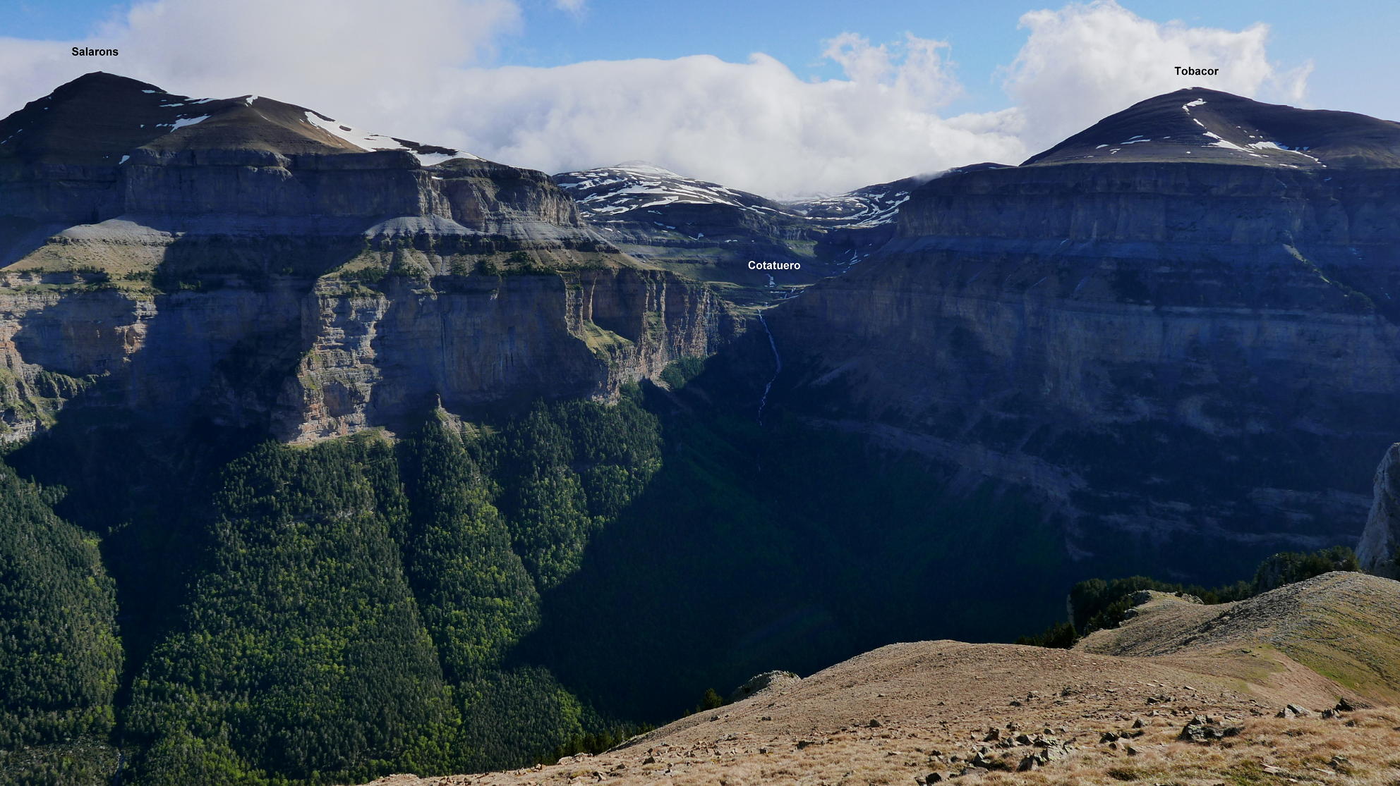 forma la pared sur del valle de Ordesa y conecta, a través de Cuello Arenas,