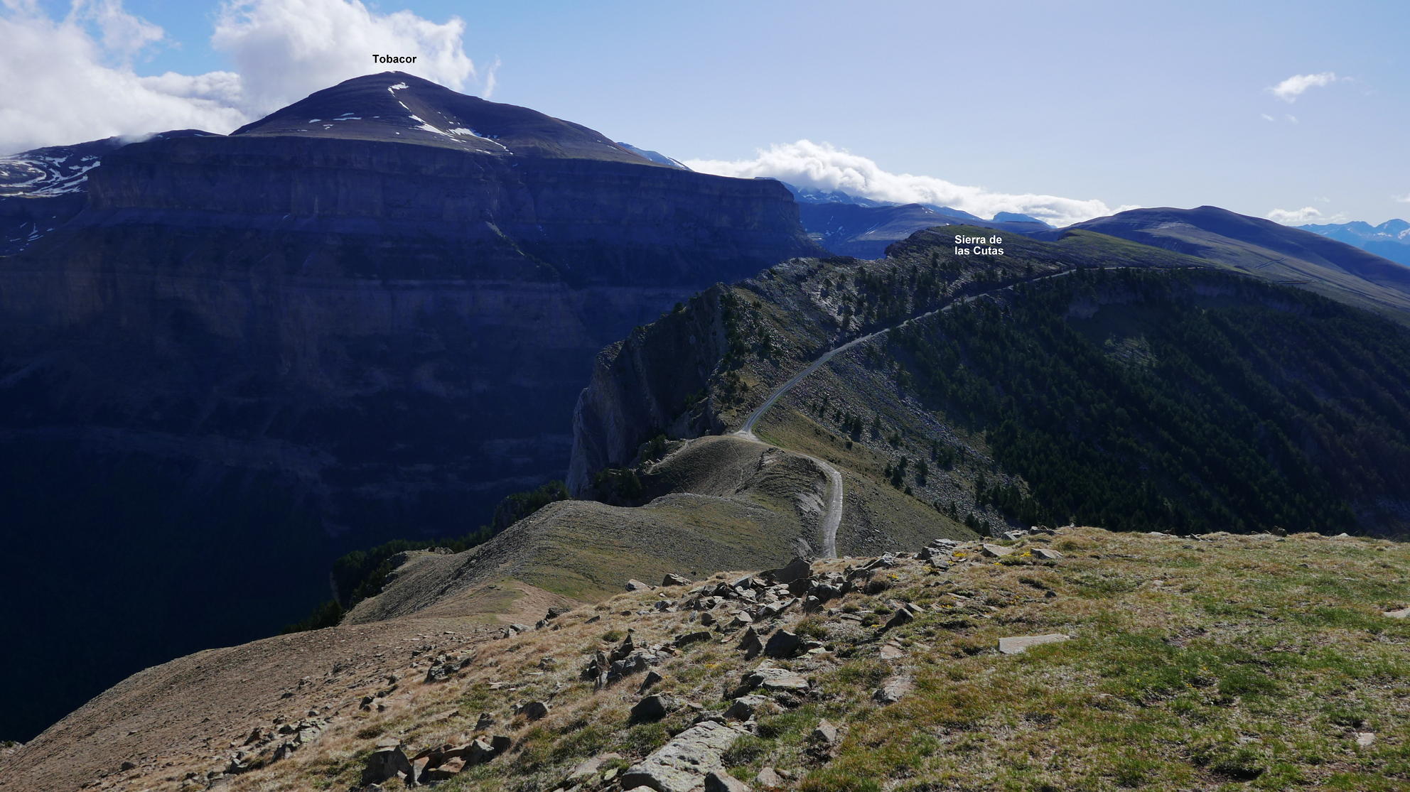 con la vertiente oeste de Añisclo. Una pista recorre la ladera sur de dicha