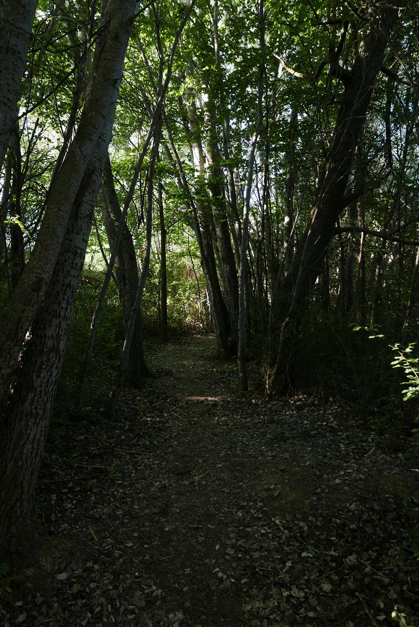Descripción de la ruta: Muel (4815m). Inicio de la senda fluvial del Huerva, señalizada con pintura blanca y azul, que va avanzando junto al cauce por la orilla derecha, entre una frondosa vegetación de ribera, con sauces, álamos y tamarices, algunos ejemplares realmente espléndidos, y pasillos de altos cañizos, proporcionándonos una agradable sombra que apreciamos especialmente a la vuelta.