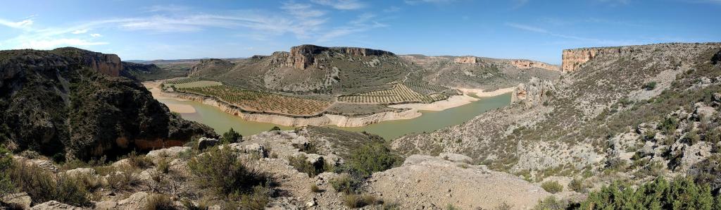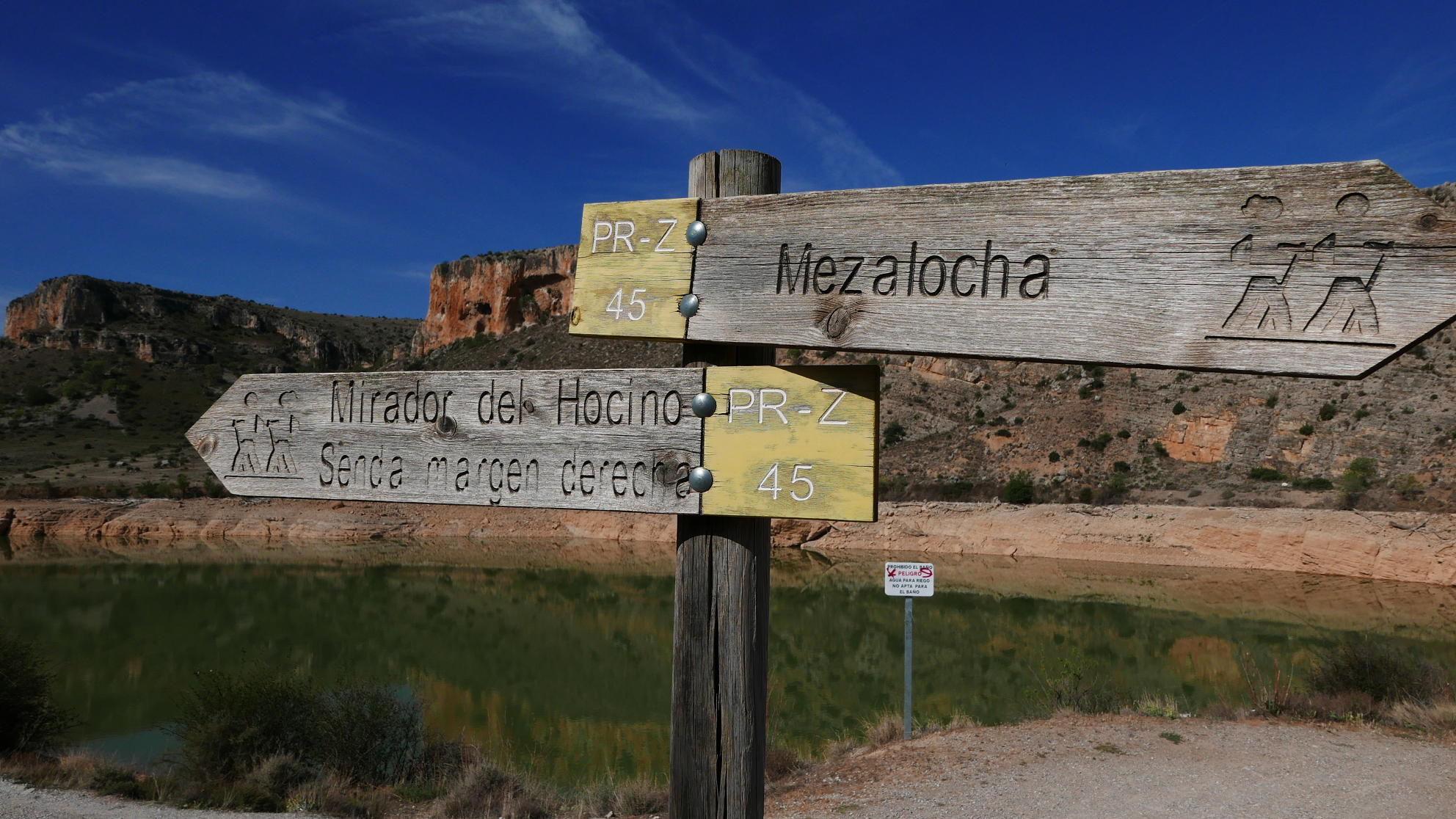 Cerca de Zaragoza hay que aprovechar las riberas de los ríos para buscar excursiones con algo de verdor. En este caso un bonito sendero circula junto al río Huerva entre Muel y Mezalocha, donde está el embalse en el que desembocan barrancos como el del Hocino, con espectaculares paredes rocosas. La ruta está calificada como senderista, aunque a partir de la presa, la senda por la orilla derecha del embalse es más accidentada