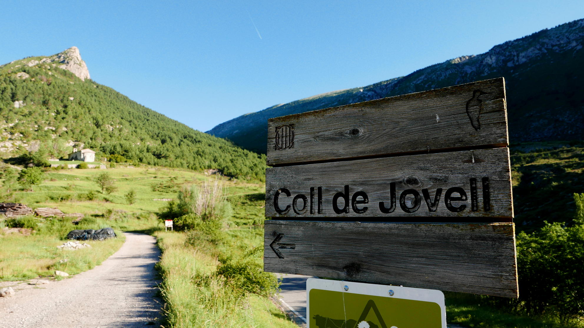 Descripción de la ruta: Josa de Cadí 1390m. Cruzo la carretera y tomo una pista enfrente, en la curva. Enseguida un atajo a la derecha sube directo a la ermita de Santa María (1445m), que es mejor rodearla por la derecha y tomar la senda GR-150-1 entre margas abarrancadas y bonitos pinares. Se atraviesa la pista y una barrera canadiense (1715m 0h38′) y enseguida se llega al coll de Jovell (1792m), amplia zona de pasto donde se puede llegar con coche por pista.