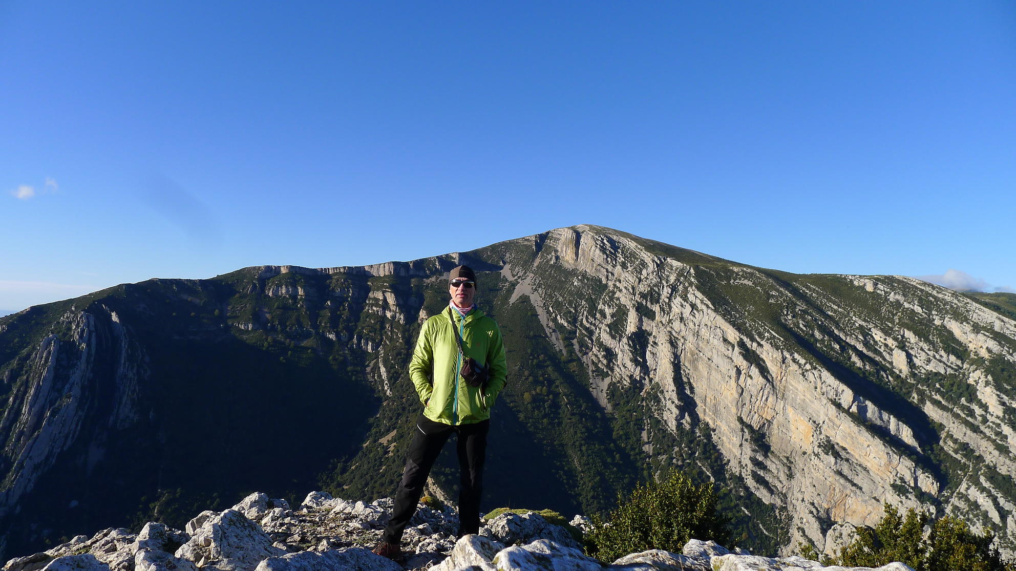 Vuelvo hasta el collado y me desvío hacia la derecha para seguir sin senda entre erizones, algo más cómodo pegado al cortado, tomando dirección sur. Los erizones y algunos pasos entre boj no oponen demasiada resistencia. Dos descensos por roca y una subida final conducen a Peña Rueba (1419m 2h19′) que no es más que un hombro que sobresale hacia el acantilado.