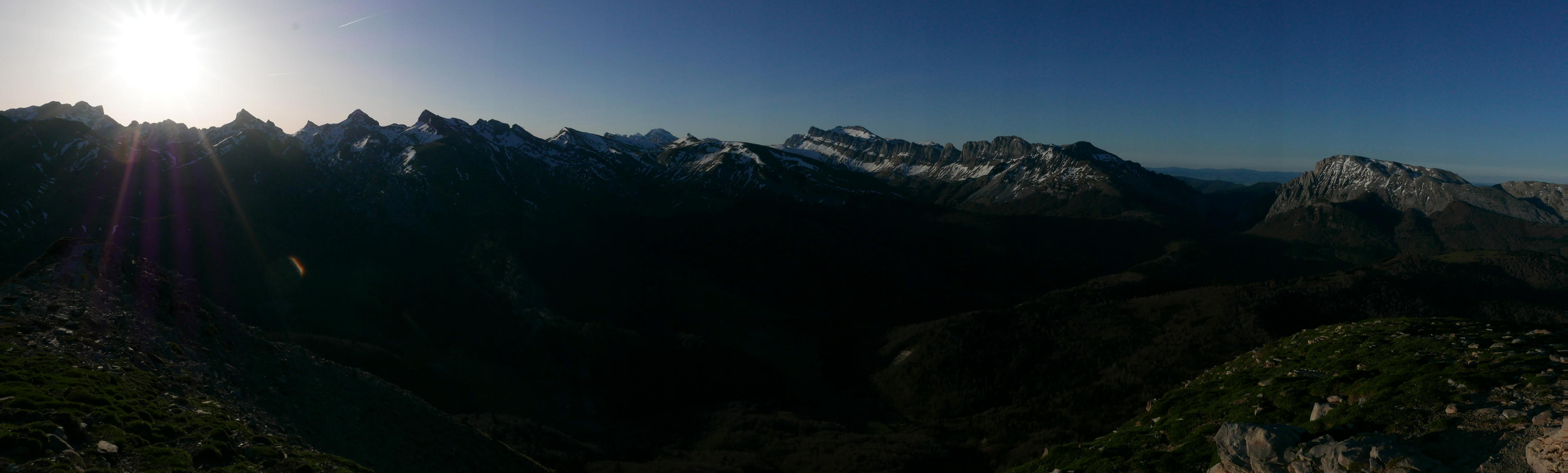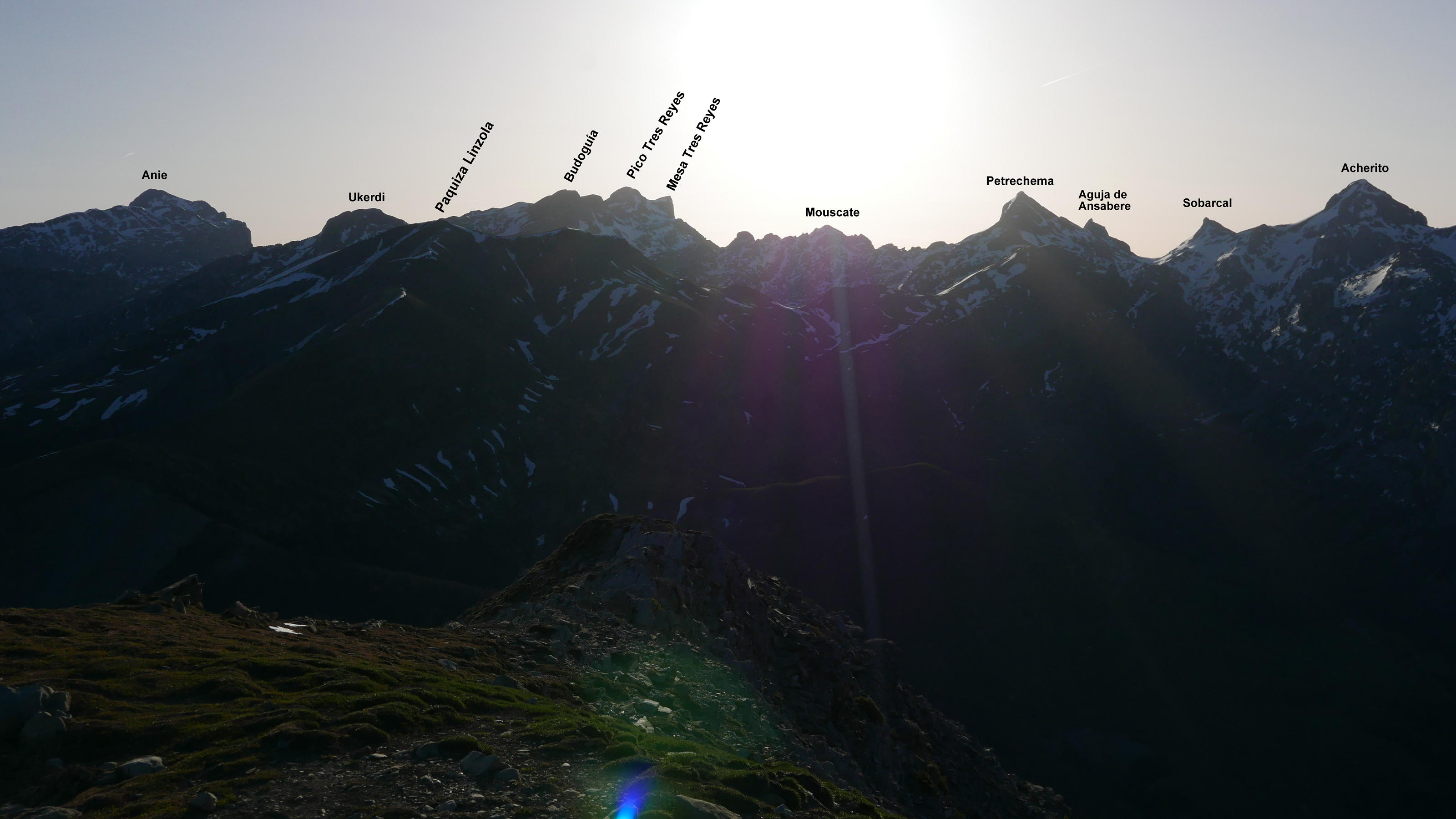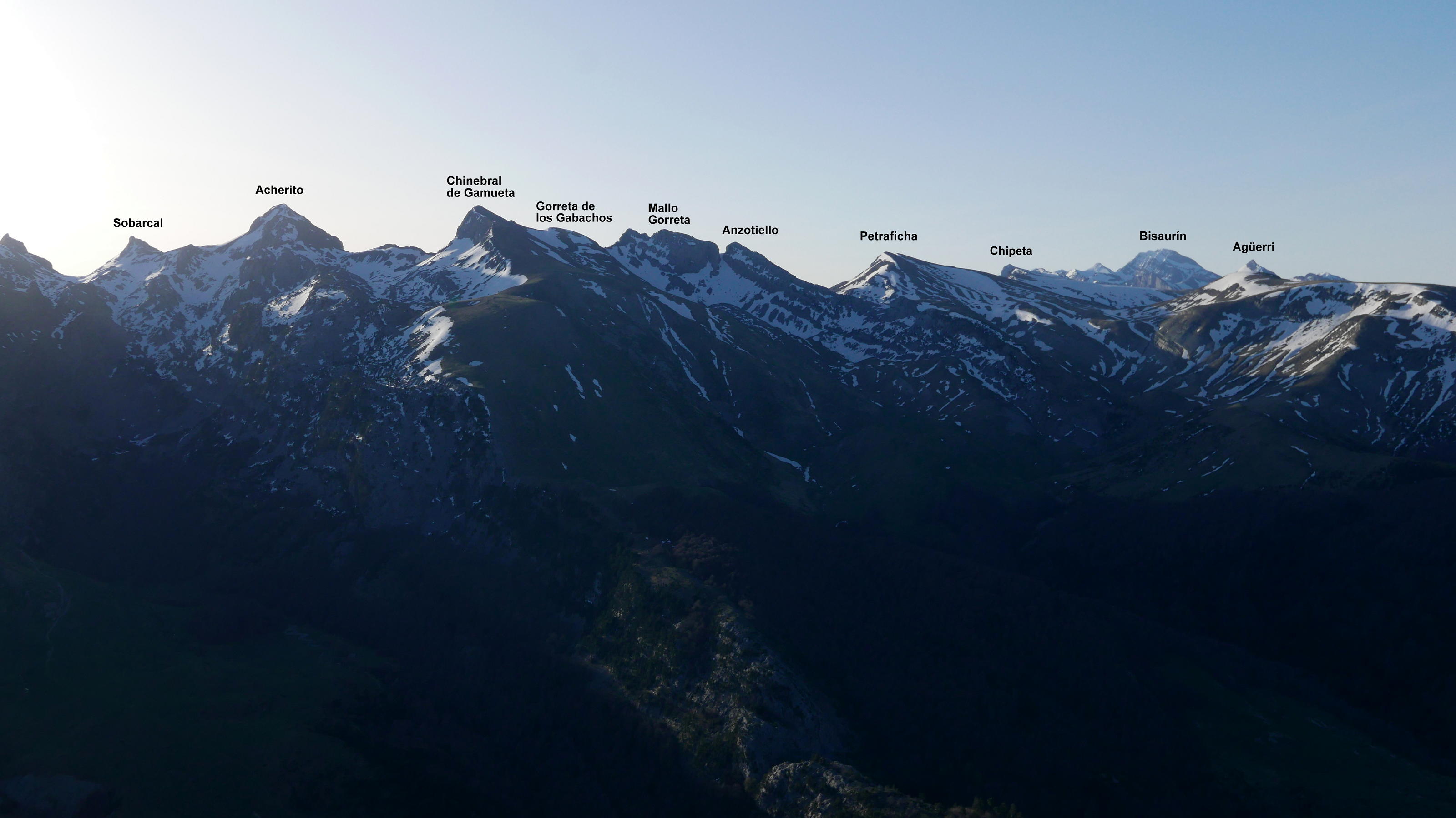 Escojo una recorrido circular subiendo por la parte más dura desde Linza y descendiendo por Navarra hacia un camino llamado Ruta de las Golondrinas, por donde las mujeres roncalesas y ansotanas pasaban hacia el Pirineo francés en busca de trabajo. Sus negros vestidos dieron el nombre de las golondrinas a su periódica migración. Antes de volver a bajar al valle de Zuriza por el collado de Maz, asciendo una suave cumbre Navarra, el Uturruburua, desde el cual tengo una vista de la cara sur del Txamantxoia.