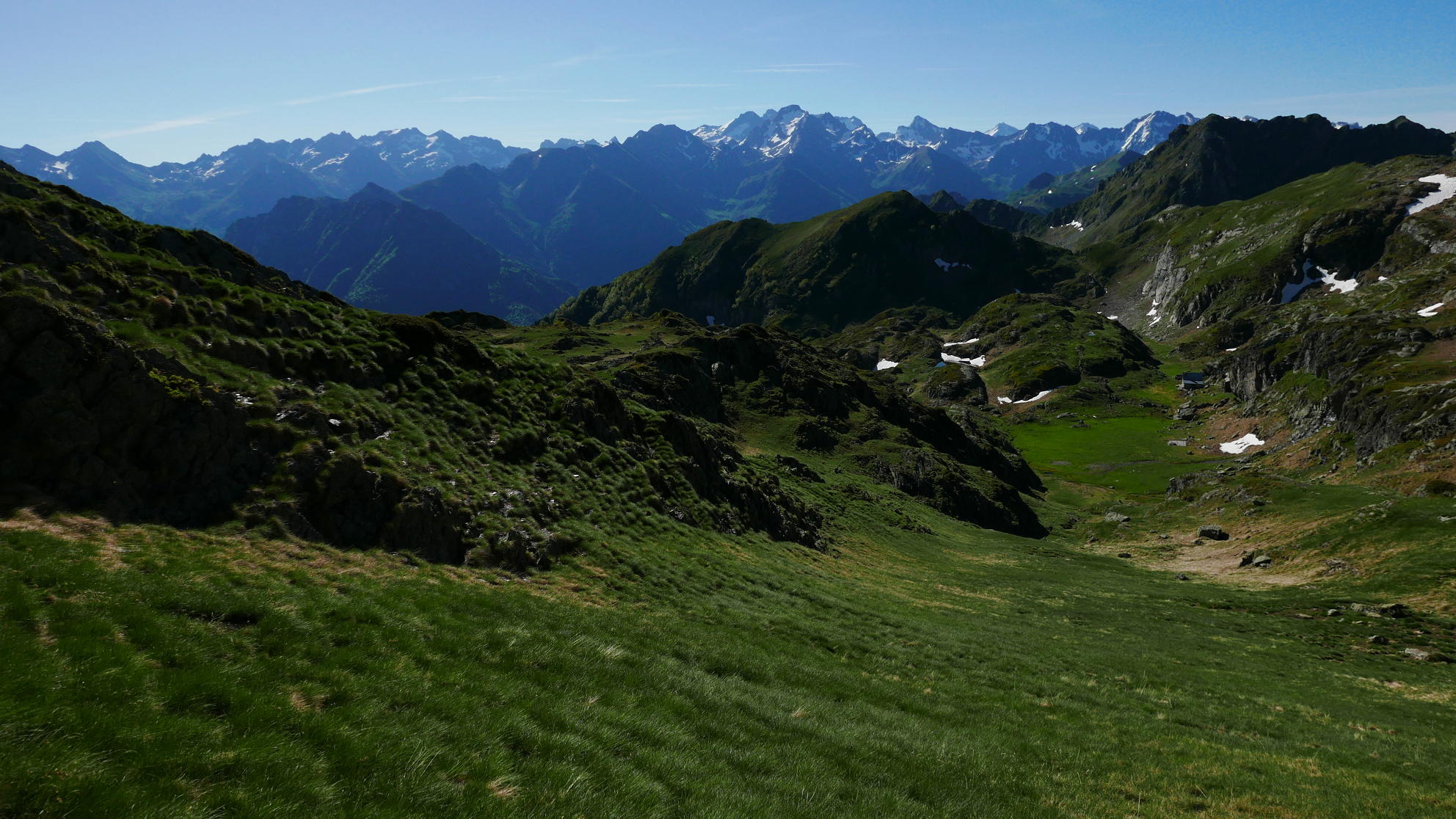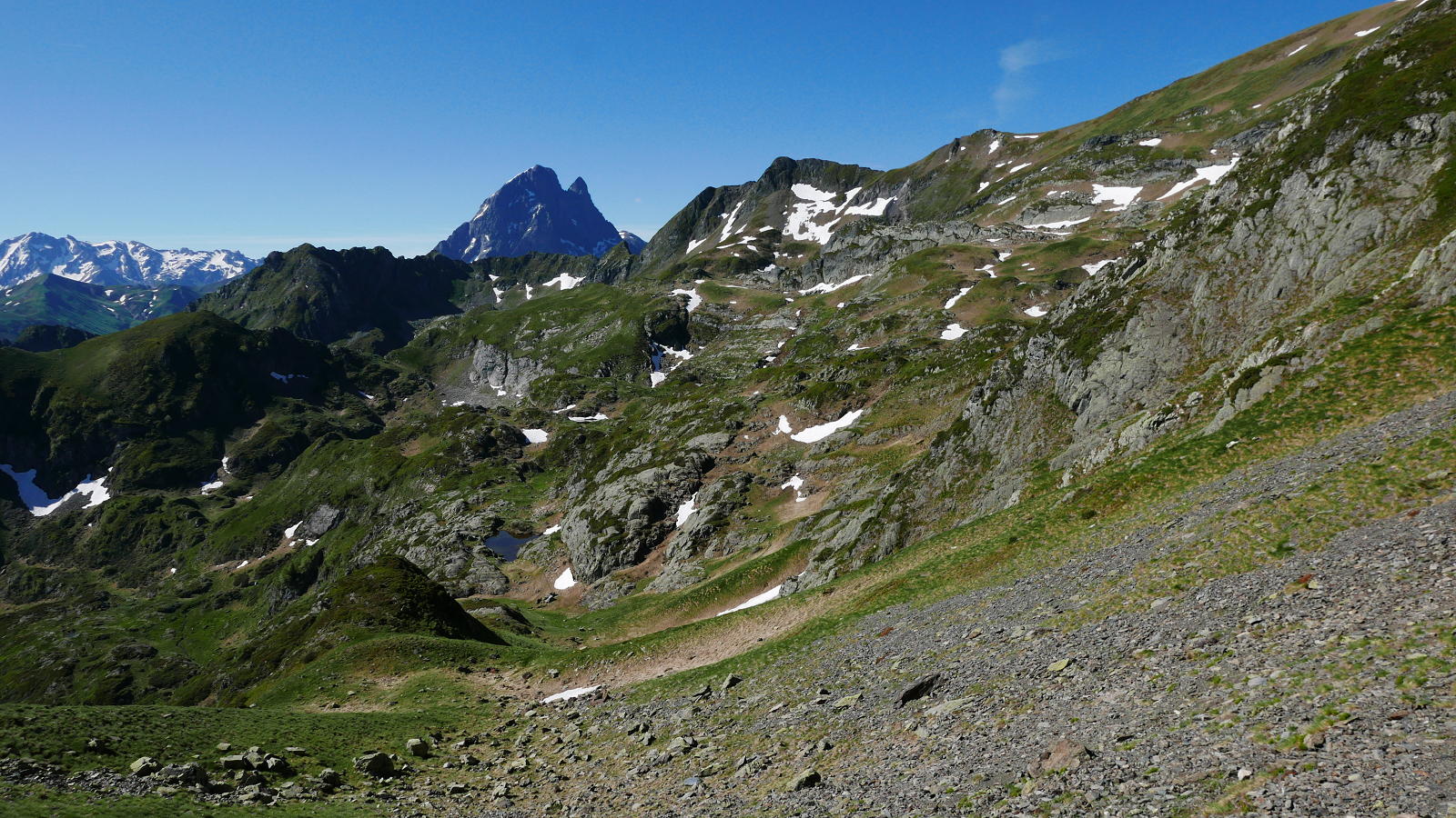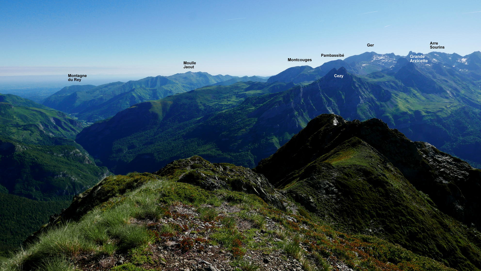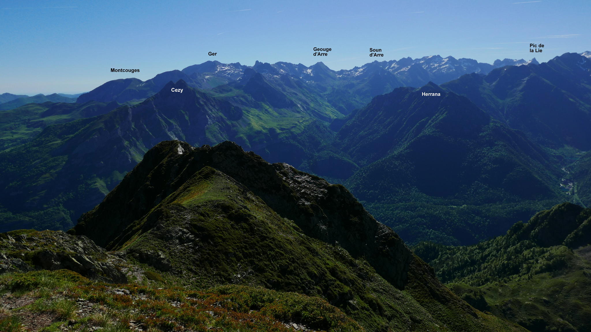 Un destacable macizo montañoso separa el valle de Ossau y el de Aspe, entre los imponentes picos del Midi d’Ossau, al sur, y el Sesques o Escarpu, al norte. Los picos que lo componen están entre 2100 y 2500m, con laderas boscosas en su parte baja y recónditas cubetas lacustres más arriba. Así que es una zona en la que se pueden encontrar numerosas rutas relativamente fáciles, aunque con considerables desniveles si se quieren coronar las cumbres.