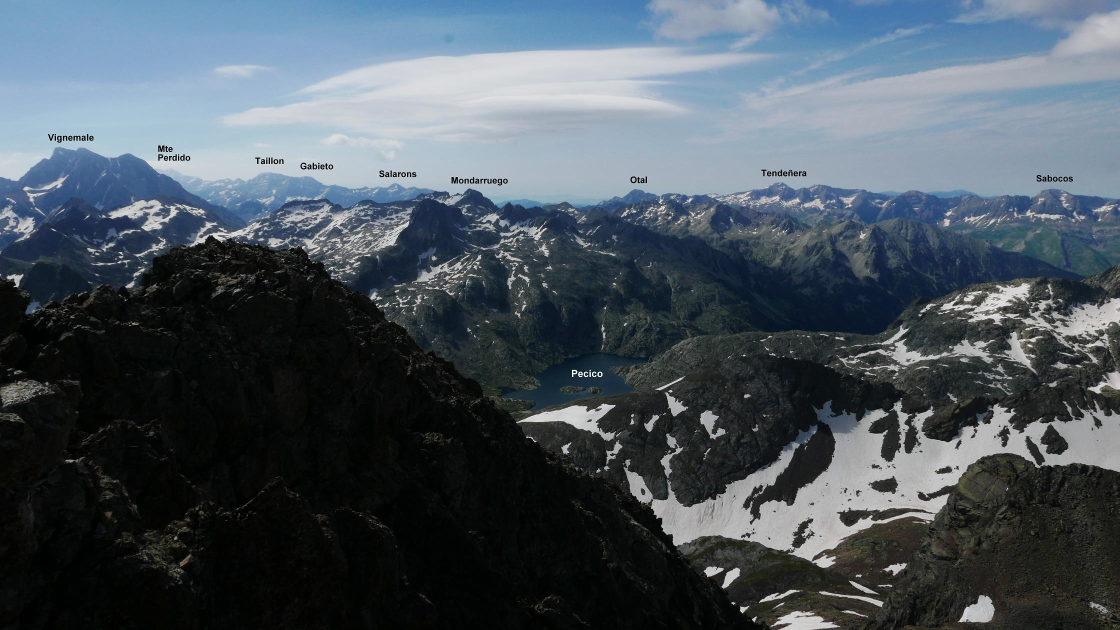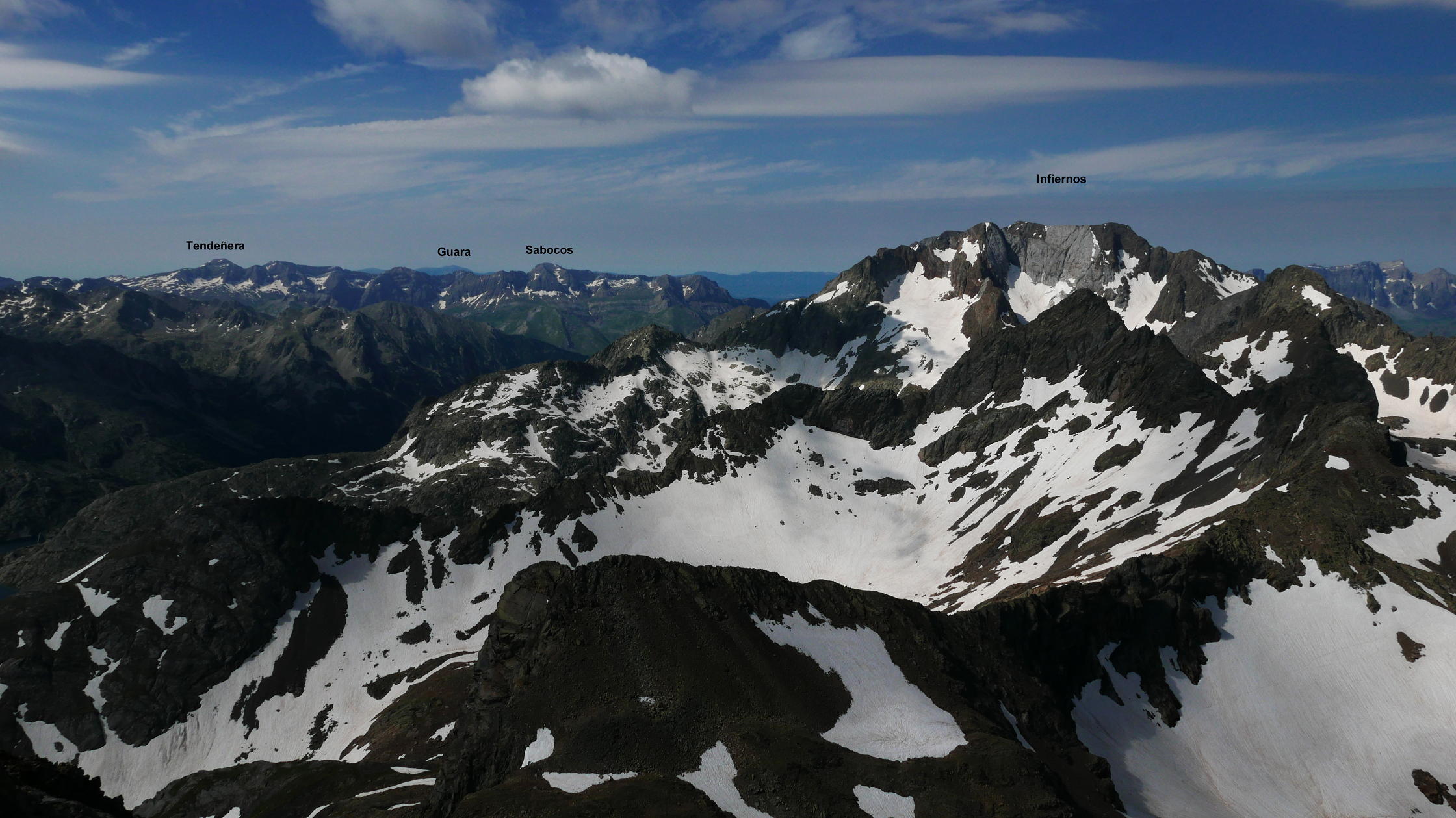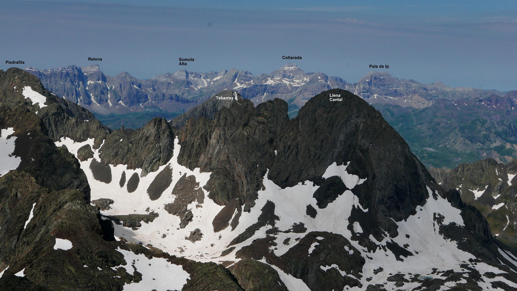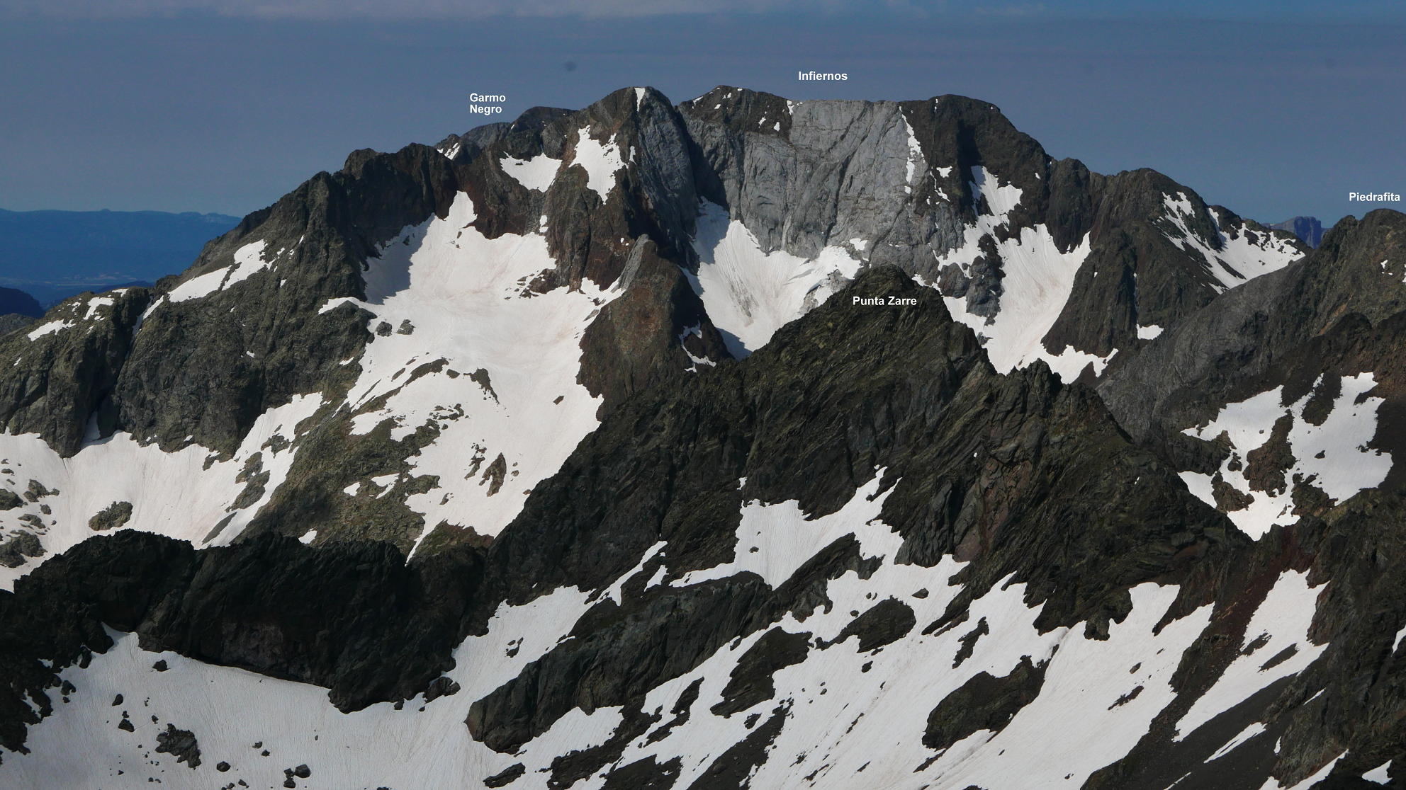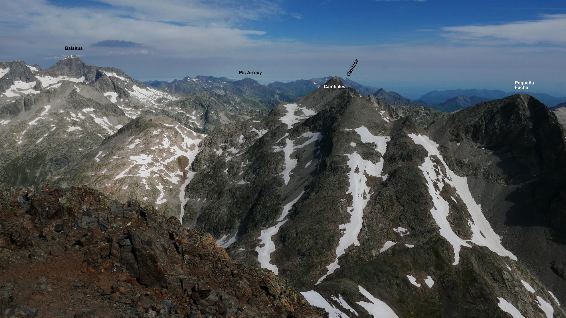 Las dificultades comienzan al iniciar la cresta norte desde el collado de la Facha. Son 240m de desnivel con zonas fáciles, prácticamente sendero, pero que se van complicando según ascendemos, con chimeneas y otras trepadas por roca bastante descompuesta que siempre presenta buenas presas, pero con atención para no perder la línea correcta marcada con hitos. No parece fácil enriscarse, al menos con tiempo despejado, aunque la semana pasada tuvieron que rescatar a un montañero francés. El casco es esencial por la posibilidad de caída de piedras y la dificultad técnica no supera el IIº grado.