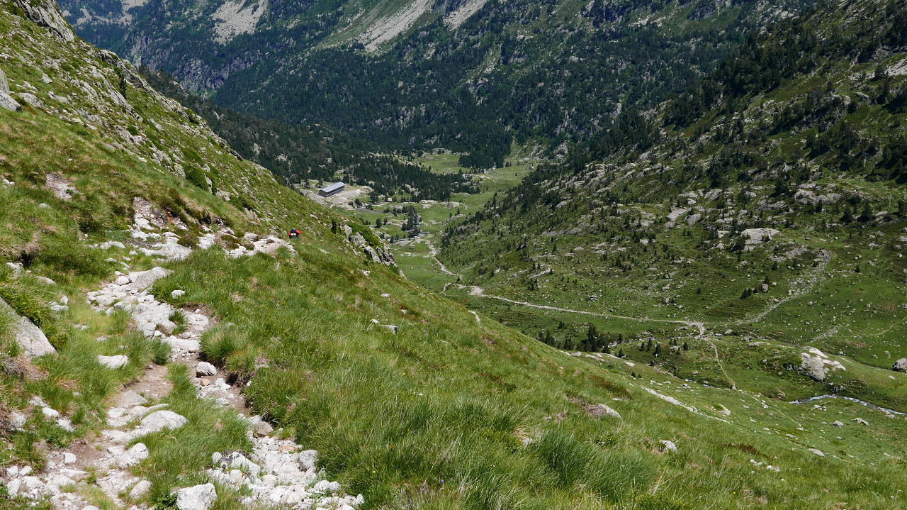 Descripción de la ruta: Refugio Wallon (1875m). Salgo hacia el col de la Fache y port de Marcadau, bajando al gave des Batans que se atraviesa por un puente. Después se atraviesa también por un puente el río del Port de Marcadau y en la bifurcación se toma el camino del col de la Fache (1950m 0h22′) a la derecha, abandonando el que lleva al port de Marcadau.