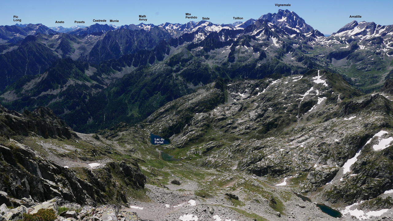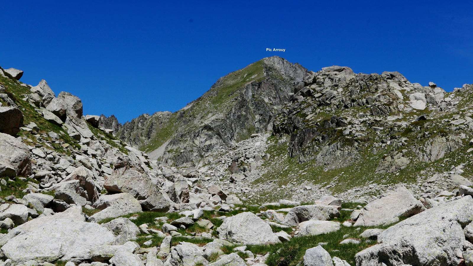 Existe más de un Pic Arrouy que, al fin y al cabo, significa «pico rojo». Está el Arrouy de 2708m al norte del lago Migouélou y el Arrouy del que trata esta entrada, de 2785m, entre el valle de Marcadau y el valle de Arrens, en el circo que forma el lac du Pourtet. La ascensión clásica empezaría en Pont d’Espagne, pero yo comienzo en el refugio d’Ilheou, donde he pasado la noche.