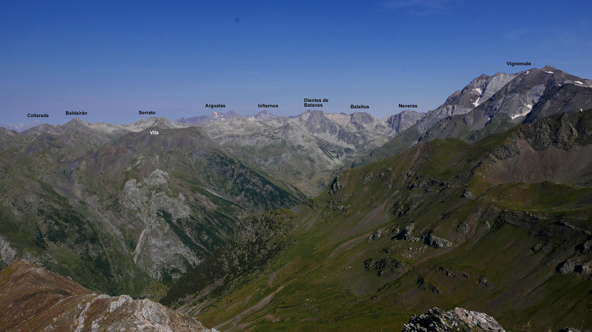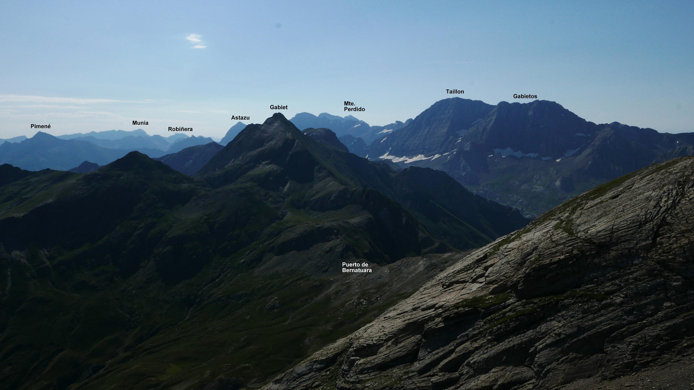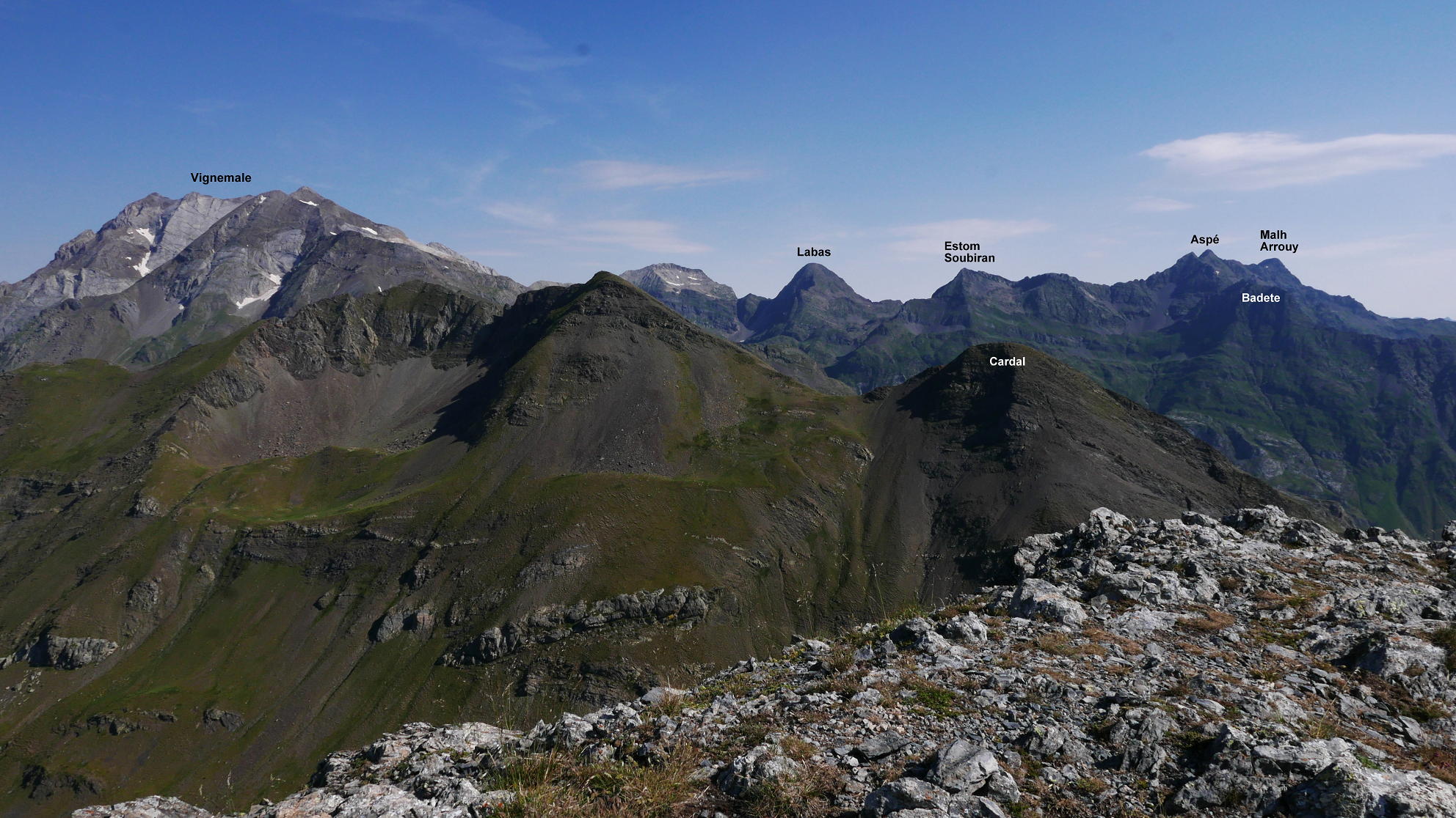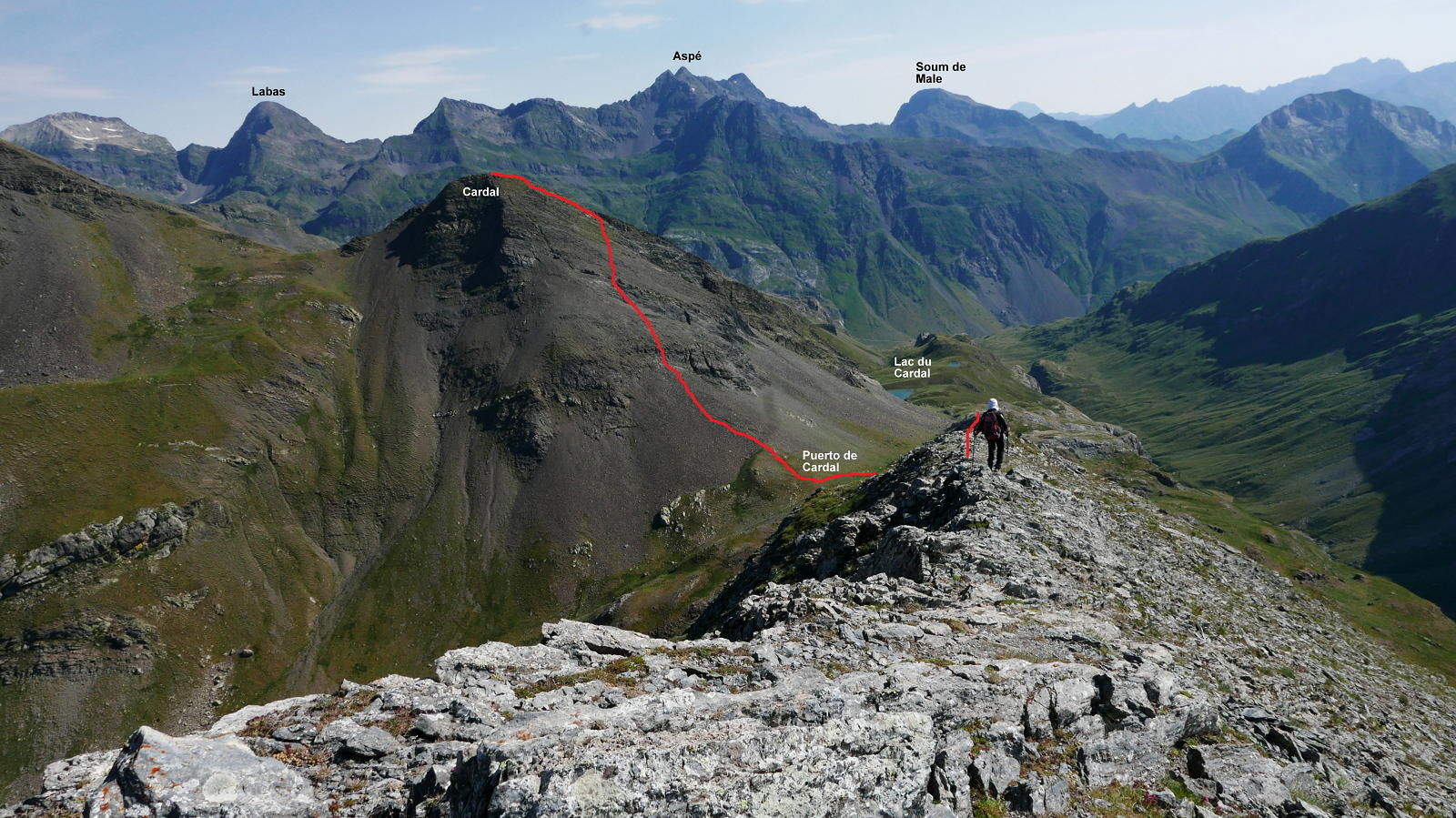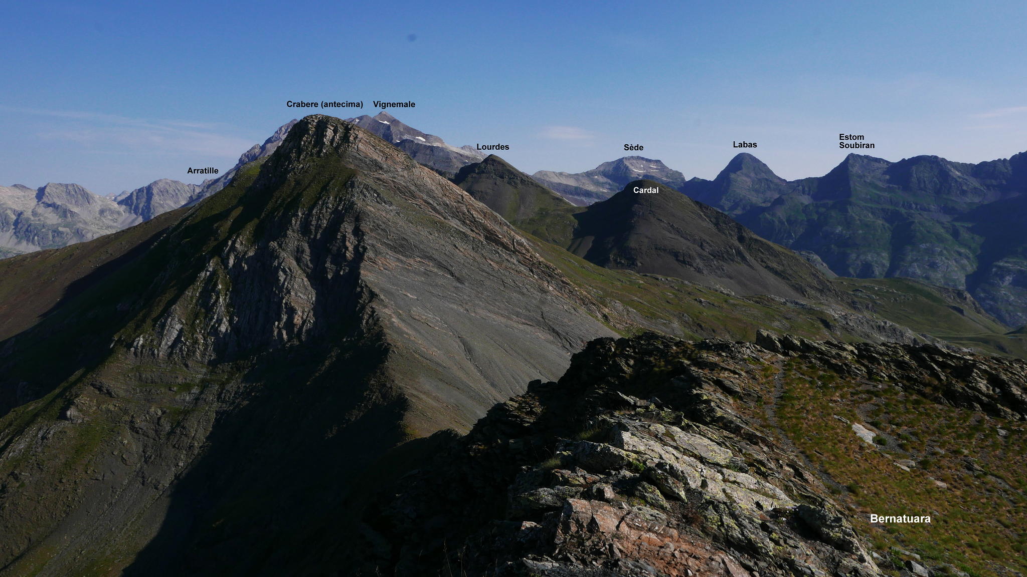 De alguna manera esta ruta es continuación de la del verano pasado a los picos Soum Blanc des Espécières y Gabiet, ya que retoma esta misma cresta desde el ibón de Bernatuara hacia el oeste y el norte. Llegamos hasta el pico Cardal habiendo hecho ya un desnivel importante. La continuación hacia los picos de Lourdes no está ni siquiera descrita en Mendikat, así que se mantiene para mi como territorio desconocido.