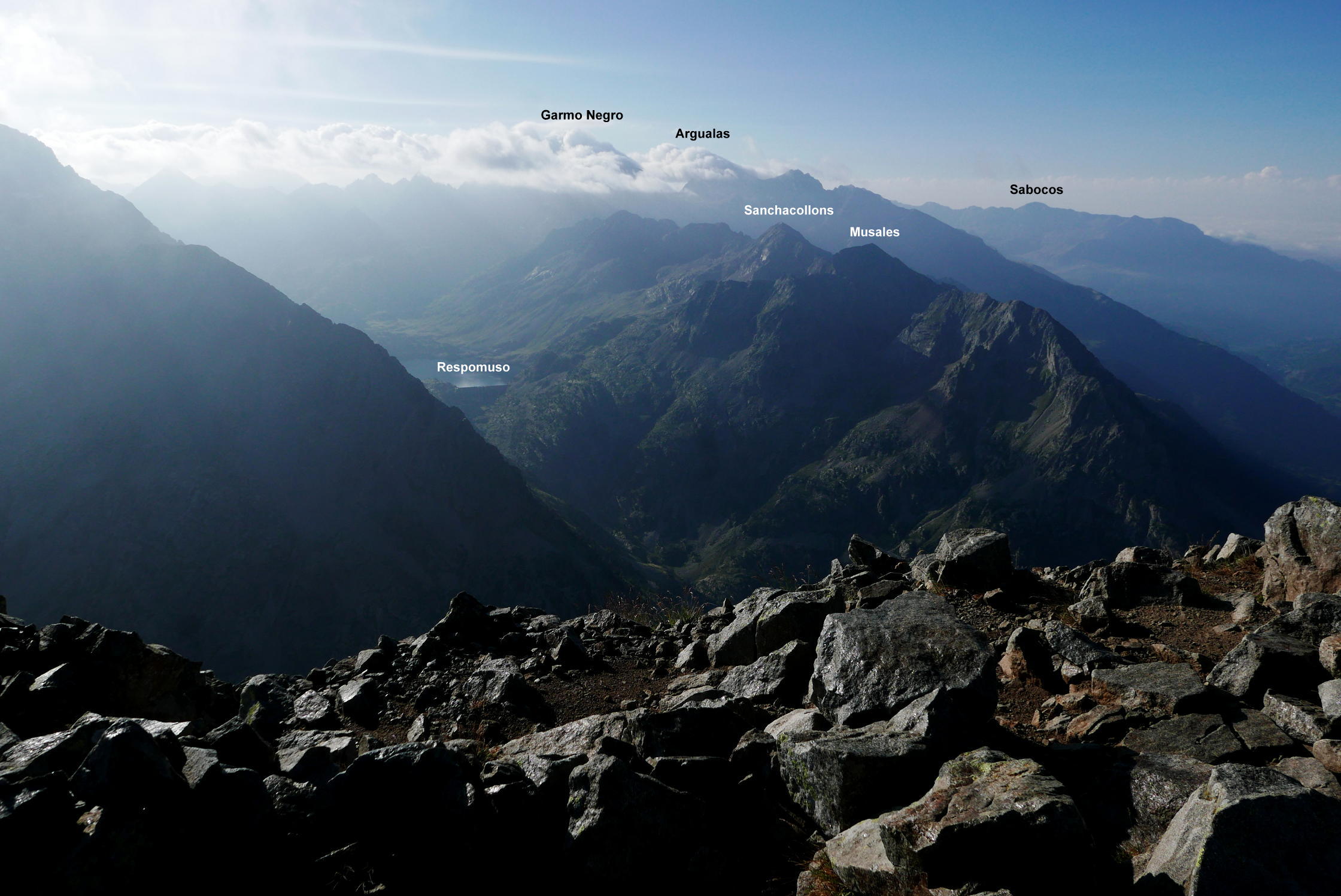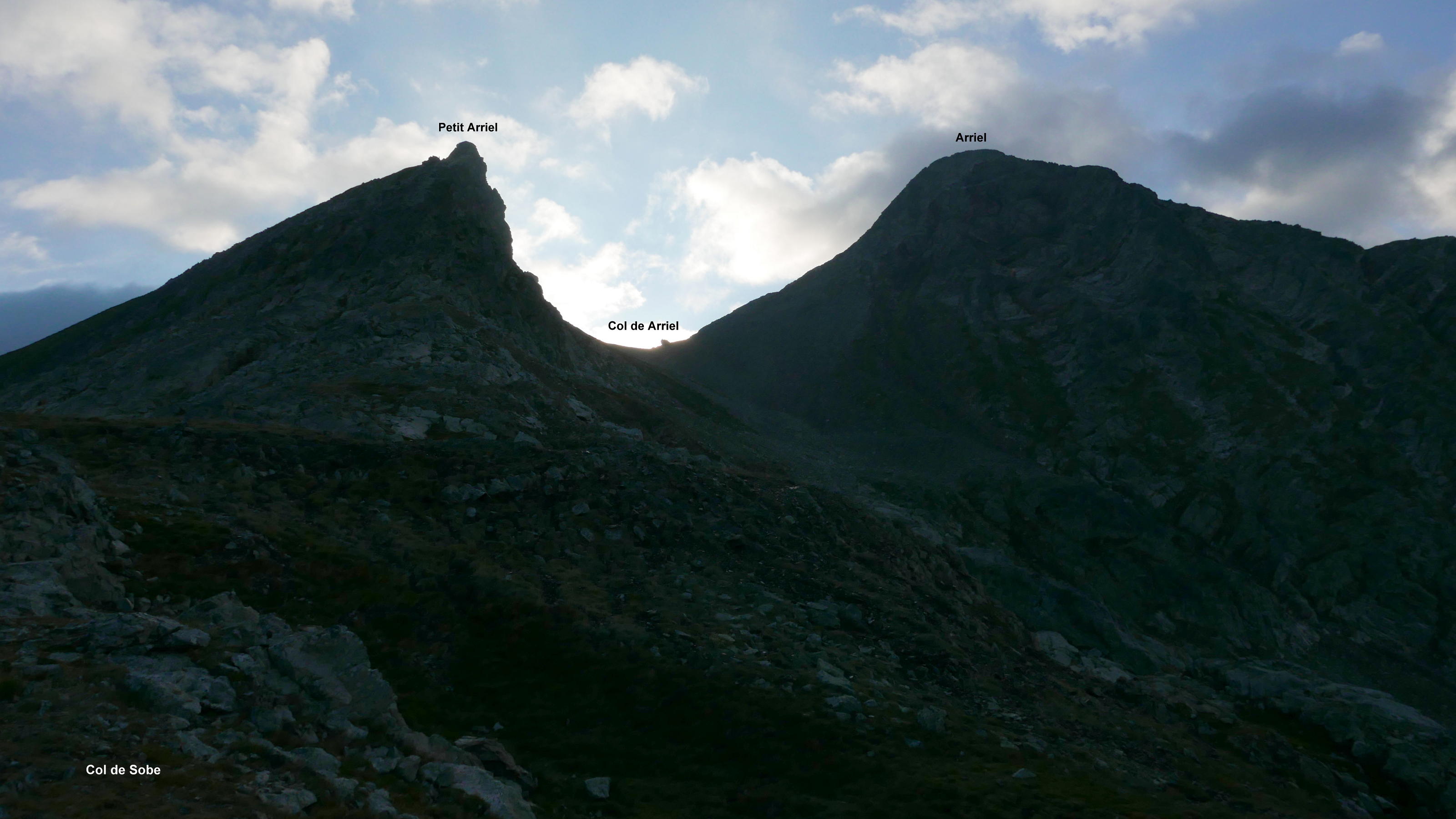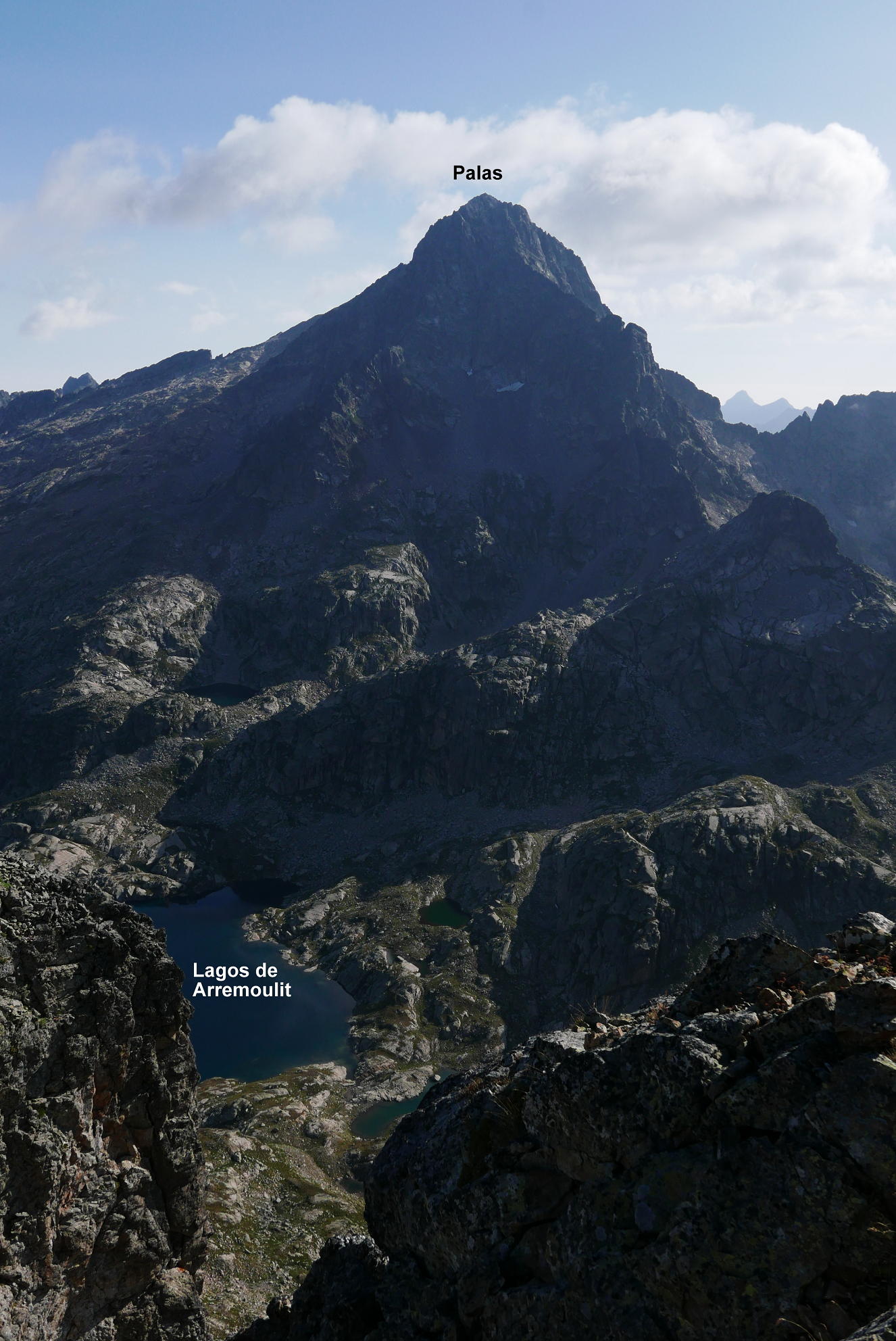 Repito la subida al pico Arriel (que hice hace 13 años), pero esta vez completándola con el Pequeño Arriel, cumbre de menor importancia que me permite tener una buena vista del pico principal. La ubicación del Arriel es privilegiada, sobre todo para admirar la esbelta figura del pico Palas.