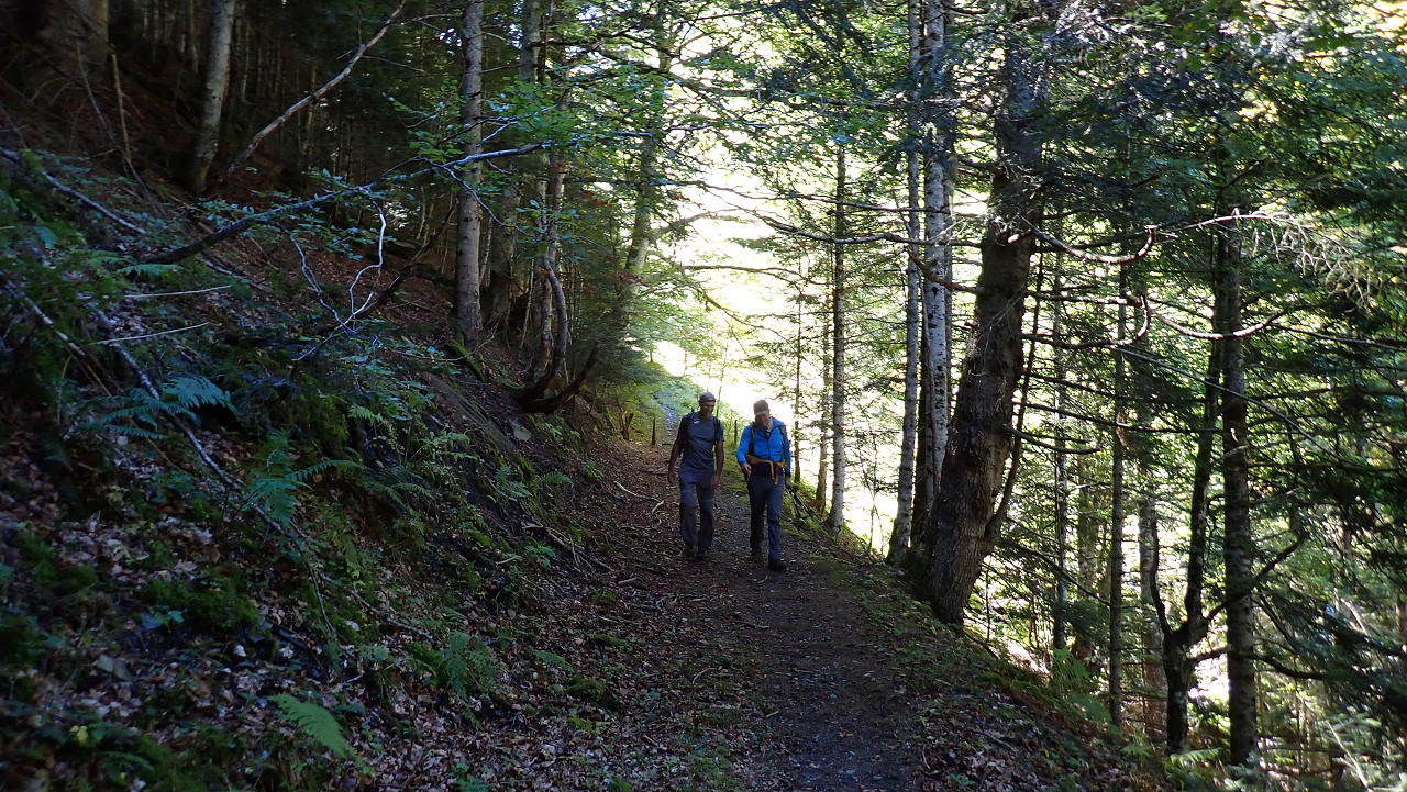 Descripción de la ruta: Aparcamiento (1310m). Empezamos unos metros equivocados, ya que seguimos la pista por la que veníamos en coche. Hay que tomar la que sale a la izquierda del aparcamiento durante escasos 8 o 10m y girar a la derecha por el camino que avanza en el bosque. Desde este momento la pendiente ya es fuerte. Pronto el camino se convierte en senda, apenas marcada por algún hito de tarde en tarde (aunque en puntos clave) pero sin pérdida, puesto que tenemos que remontar todo el valle hasta cerca del lac de Sarroués.