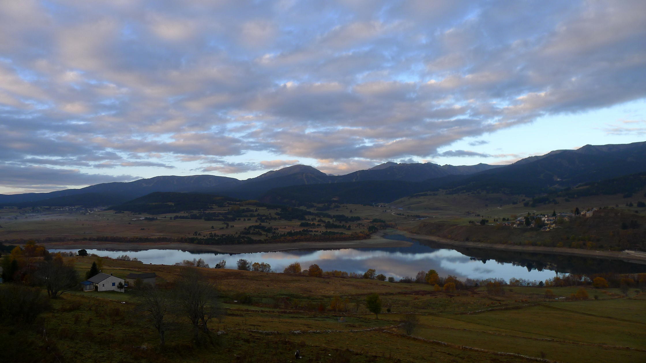 Descripción de la ruta: Odelló (1505m) es un pequeño pueblo donde termina la carretera. Las calles están levantadas por obras, parece que están metiendo alguna conducción (agua, gas, fibra, no sé) por lo que aparco a la entrada del pueblo. Salgo por una pista con árboles a los lados (pinos, abedules,abetos, hayas), entre campos de pasto. Hay unos ciervos en los campos. Sigo las señales del GRP Tour del Capcir con rojo y amarillo. Me encuentro con otra pista que tomo a la derecha (1545m 0h19′). Al tomar esta pista está la cabaña de Becet (1570m).