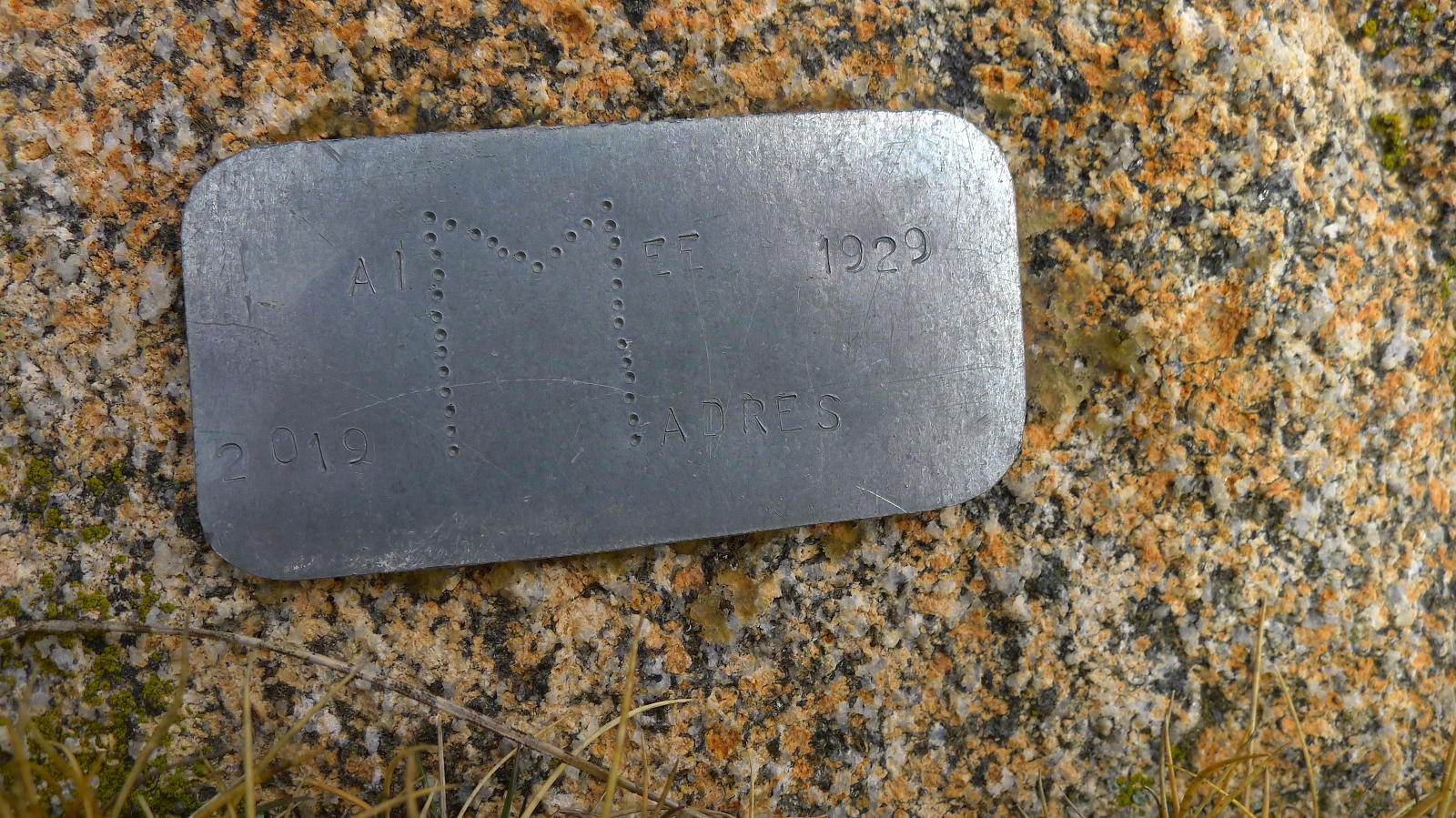 Hay una bifurcación a la izquierda (1910m 1h13′) con pintura en una piedra que pone «Variante Madres», iniciando una senda pedregosa y de fuerte pendiente. Después asciende por una amplia ladera, abriéndose paso por pasto alto y escobas, uno de estos caminos que parecen suaves pero te sorprendes con la respiración jadeante y a tope de pulsaciones. Palos clavados con pintura vieja jalonan el camino.