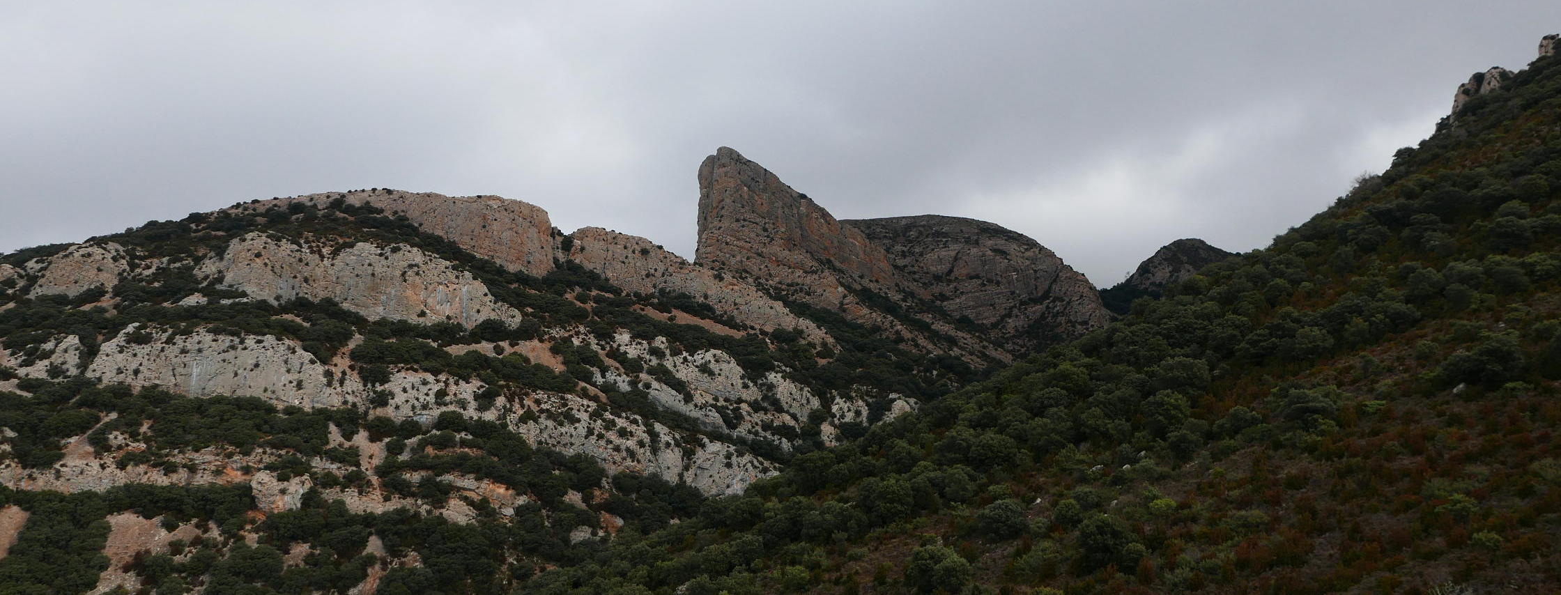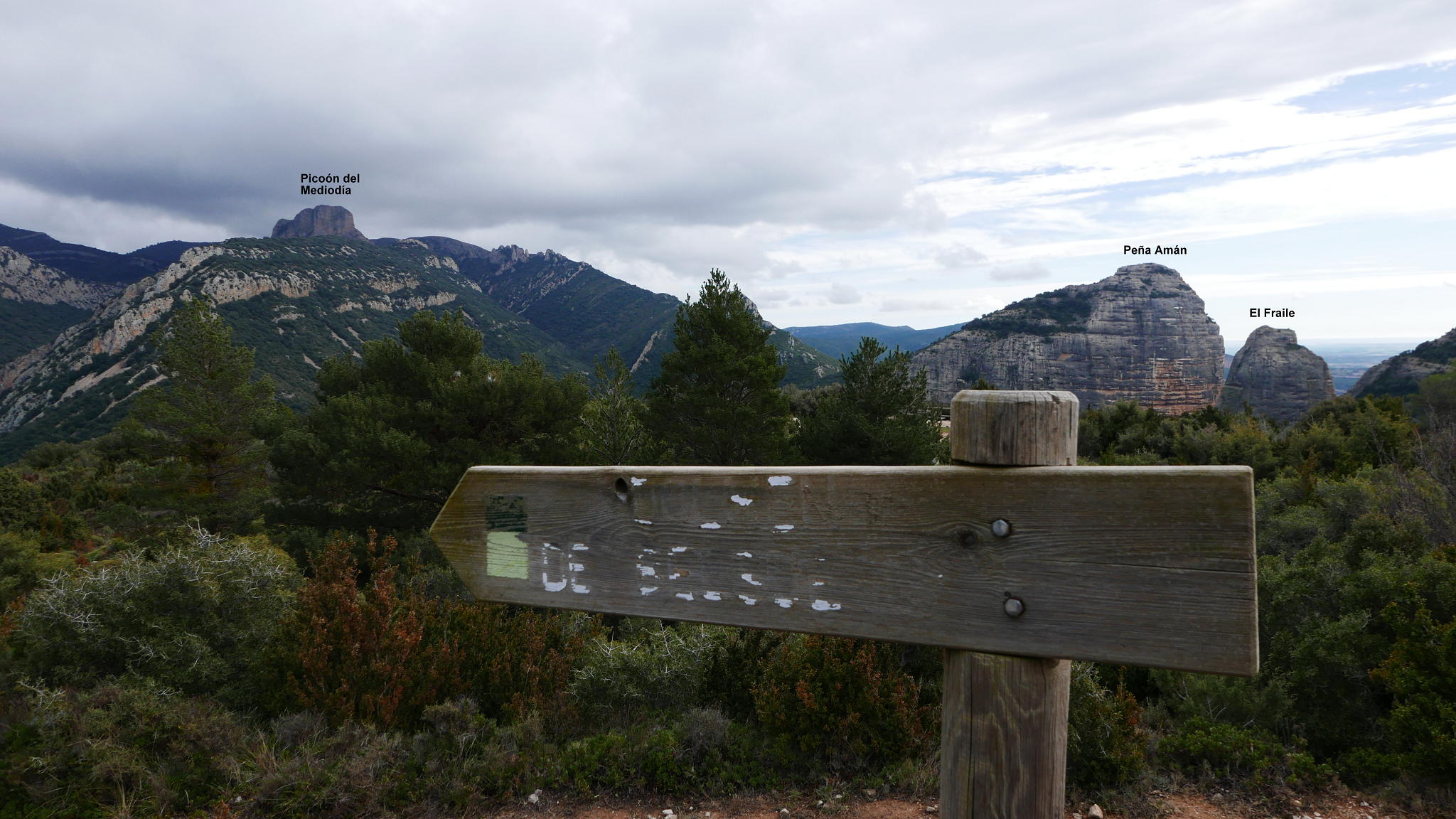 Una proa rocosa destaca esbelta entre las peñas de la Sierra de Guara: el Picón del Mediodía. A pesar de estar defendido por paredes verticales, una ruta, no del todo fácil, pero accesible, permite subir a su cima con cierto esfuerzo y salvando un paso equipado con una cuerda y una cadena. Hoy las vistas no han sido demasiado gratificantes, pero en mi ascenso en 2014 desde San Julián de Banzo podéis ver fotos con mejores luces (Picón del Mediodía desde San Julián de Banzo). En aquella ocasión hice también una bonita ruta incluyendo la subida a la Peña Amán.