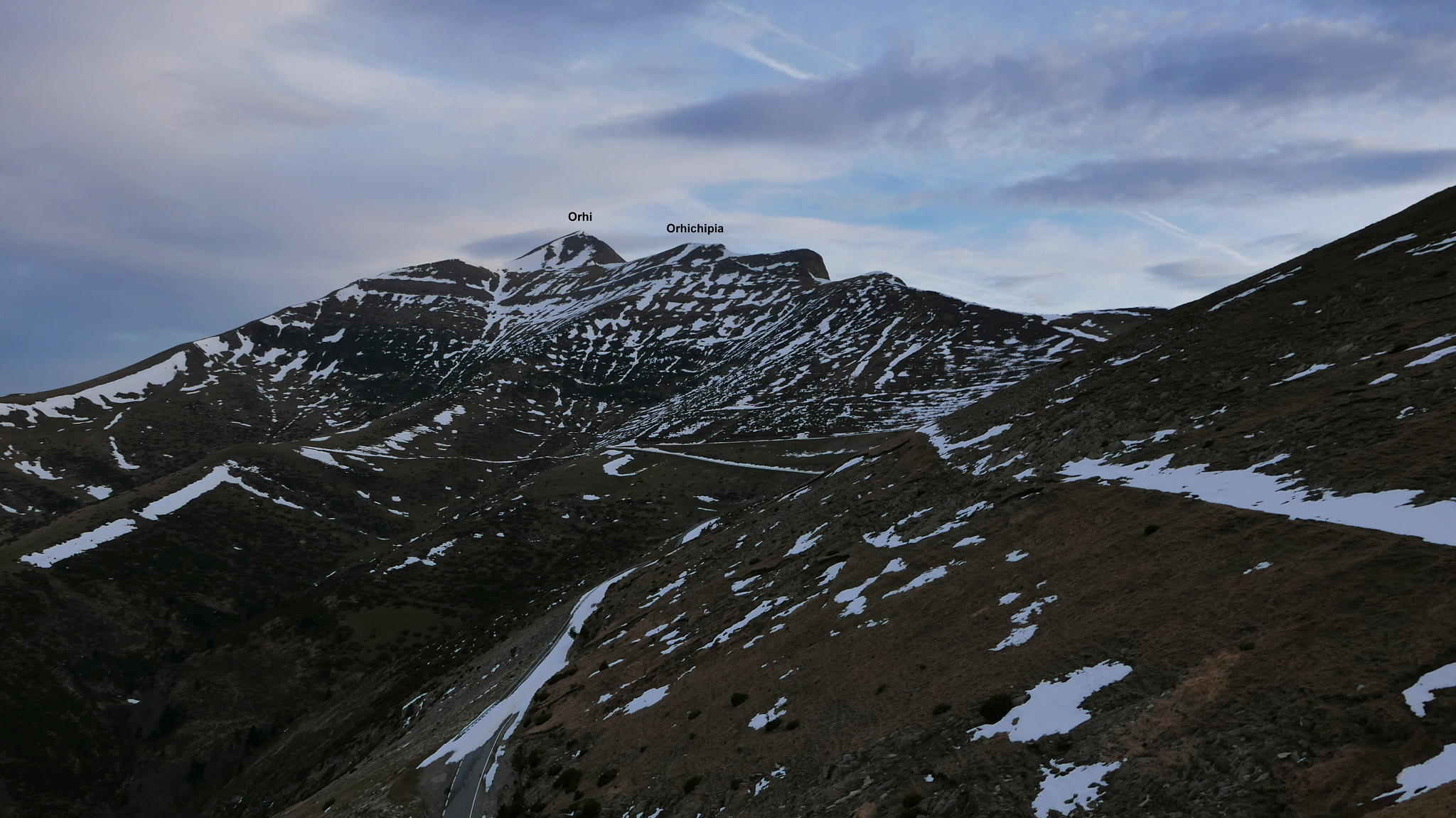 El IGN de España da una altura de 2017m, pero el visor IDENA de servicio cartográfico de Navarra da una altura 2019.48 en una primera cota y 2018.08 en una segunda cota, donde está el vértice geodésico. Hasta el pico Añelarra, cerca del Anie, no nos encontramos una cima que supere al Orhi, y el collado de referencia sería el collado Arrakogoiti (1415,18m), por lo que la prominencia del Orhi debe ser 604.3m (el mapa de 1001cims da 601 ya que toma la altura del Orhi del IGN español).