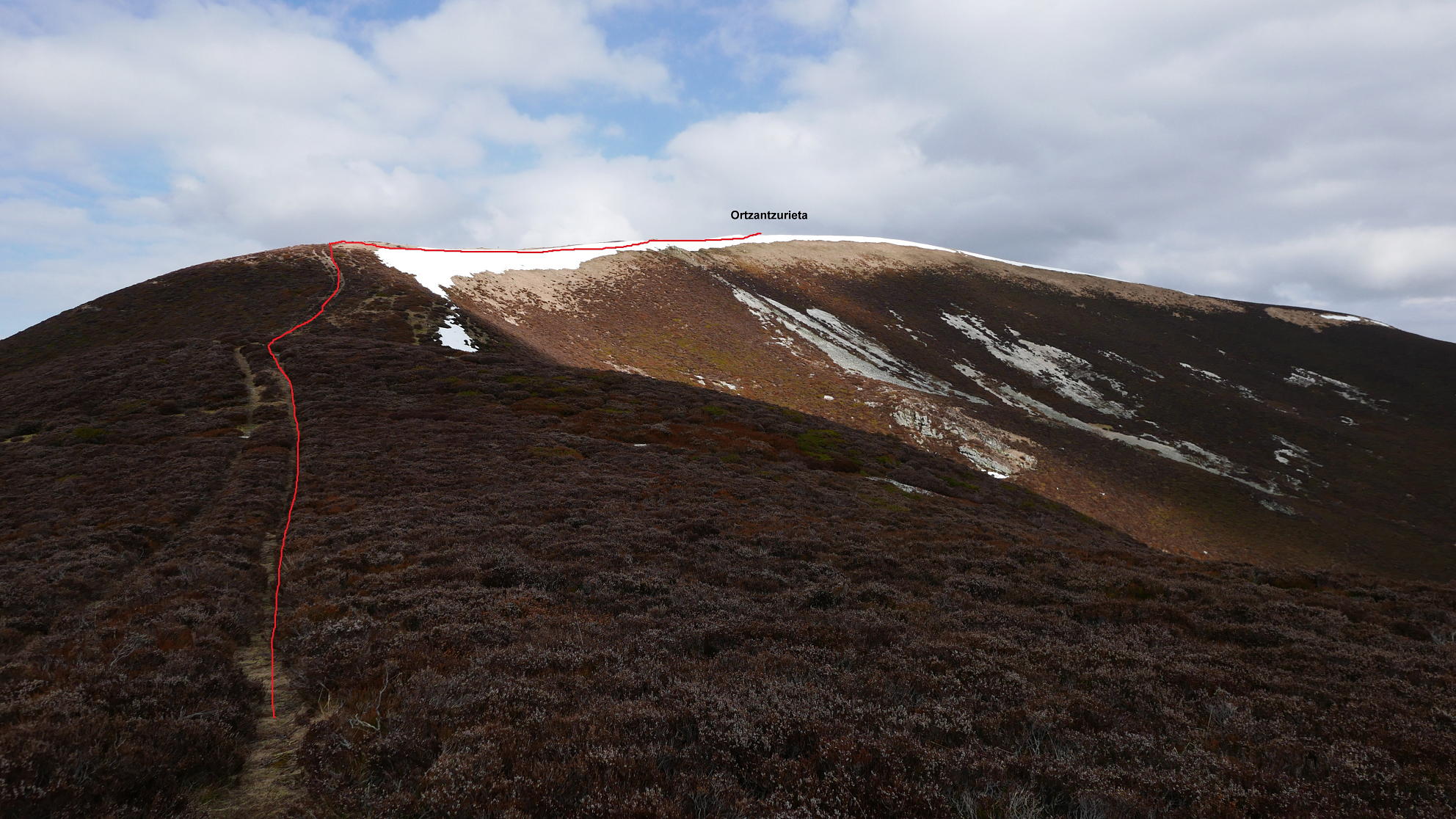 Llevo a cabo una ruta circular con subida por la arista sur, poblada de hayedos y, en buena parte, sin sendero, por lo que el avance se hace un poco duro, y descenso por una vía mucho más cómoda siguiendo el Camino de Santiago del País Vasco (Donejakue bidea) desde el collado Lepoeder, al oeste del Ortzantzurieta, por un precioso sendero bien señalizado en el hayedo