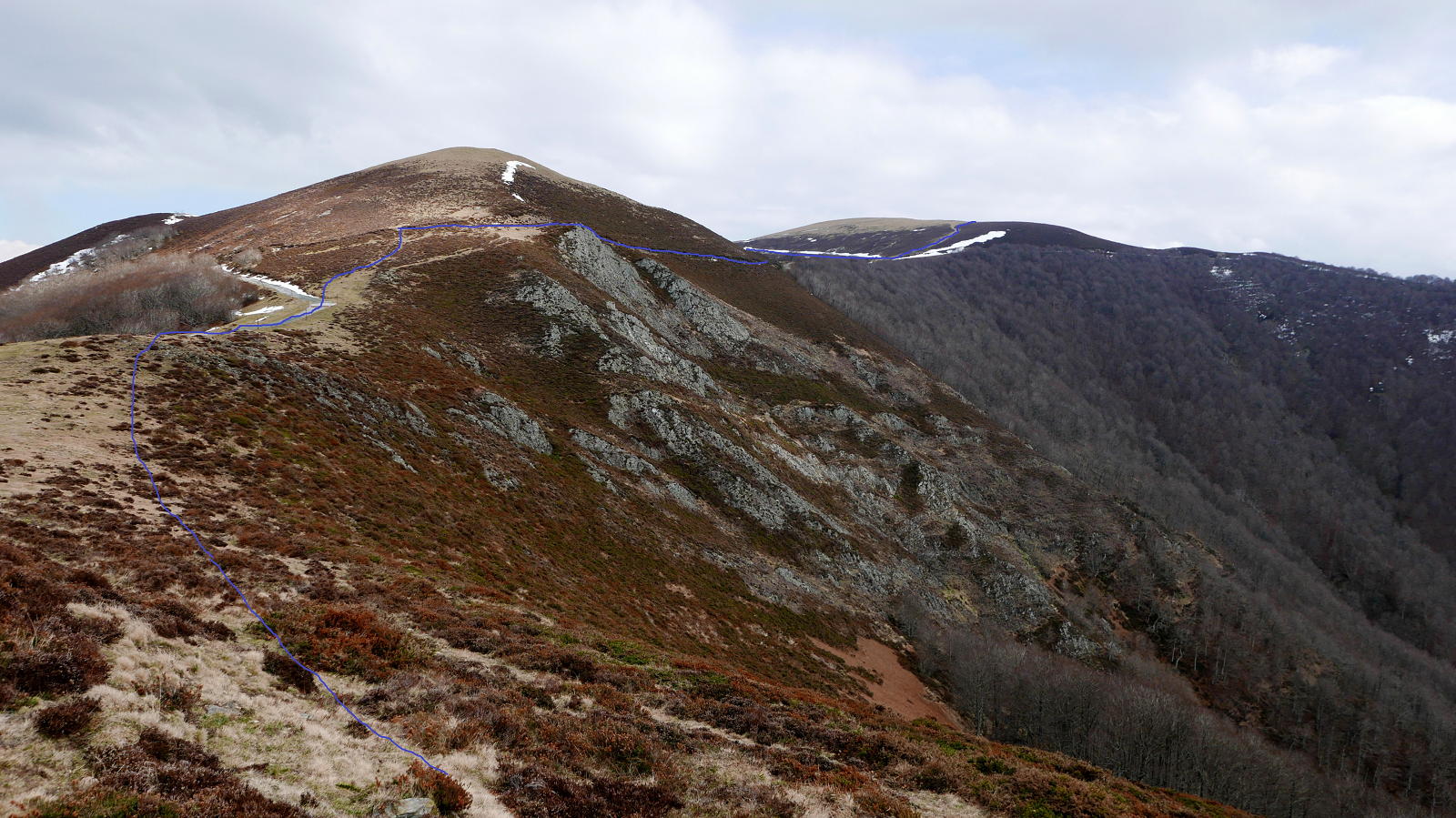 Después de subir el Orhi por la mañana, me desplazo desde el puerto de Larrau hasta Roncesvalles donde inicio el ascenso al Ortzantzurieta, otra montaña de este proyecto «Navarra +1000 +500». Se trata de una cumbre redondeada pero bastante destacable. Para encontrar un monte más alto hacia el oeste hay que ir hasta los Montes de Valnera (Cordillera Cantábrica entre Burgos y Cantabria) y hacia el este hay que desplazarse hasta el pico francés de Odizügaña (1613m) a 18km.