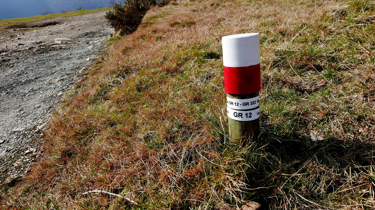 Descripción de la ruta: Puerto de Artesiaga (980m). Tomo la pista que sale hacia el oeste (GR-12, sendero de Eskal Herria y GR-322, sendero circular de 68km con salida y llegada en Zubiri). La pista tiene un desnivel muy escaso y llego a un cartel (Zirola 1088m 0h16′) donde hay otra pista que se bifurca y donde dejo la pista para iniciar el ascenso sin senda por ladera de pasto en dirección SW. En la ladera vuelvo a encontrar postes con rojo y blanco de GR (1230m 0h29′) y ya los voy siguiendo todo recto y luego con curva hacia el sur, con fuerte pendiente, hasta la cima del Saioa (1418m 0h48′).