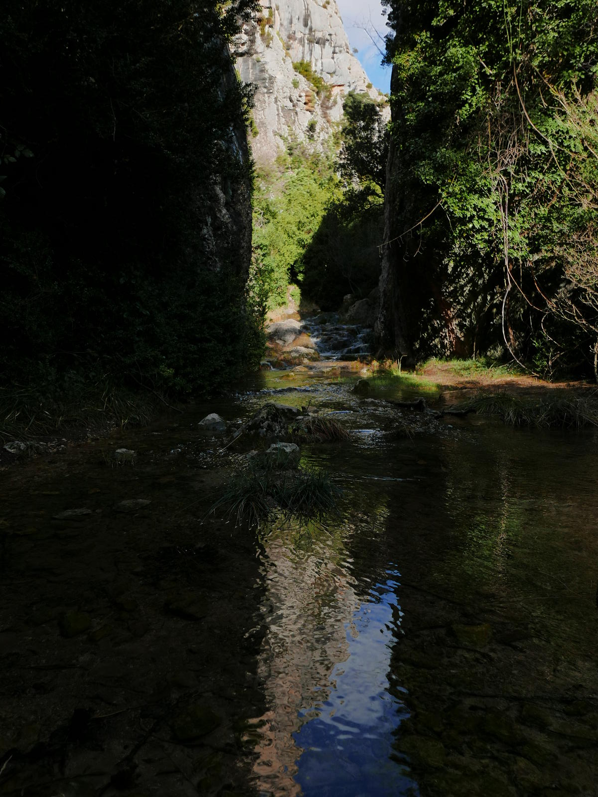 Y en segundo lugar la travesía por el barranco del Calcón. No es difícil en sí, pero hay que tener en cuenta que solo se puede hacer cuando el caudal es bajo. Si ha habido días de lluvia o deshielo será impracticable. En esta ocasión he bajado con lo que creo que es el caudal máximo para ser viable. En cualquier caso es un pasaje increíble.