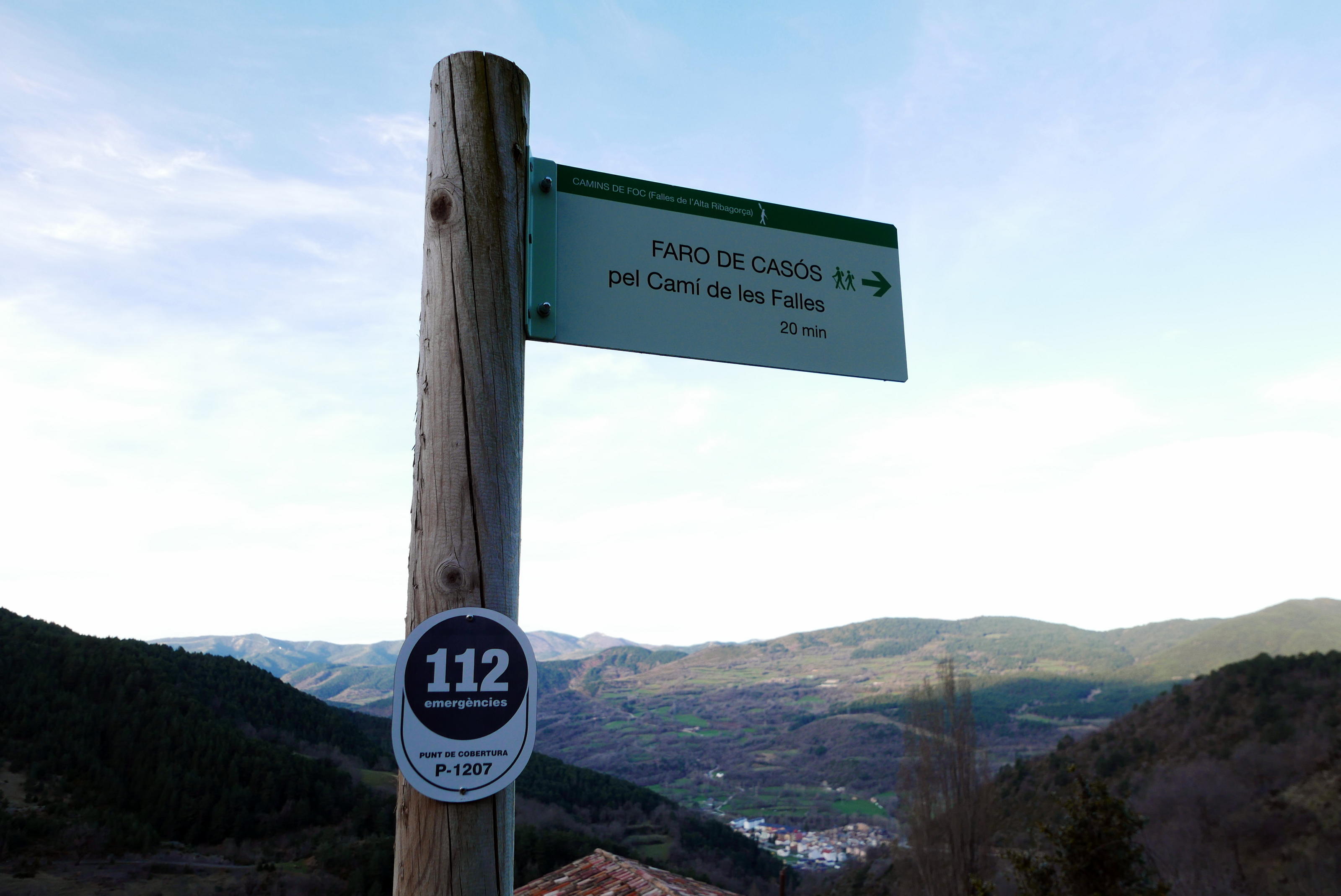 Descripción de la ruta: Casòs (1208m). Seguimos la pista que circunvala el pueblo por arriba indicada con un cartel «Faro de Casòs pel camí de les Falles» y enseguida nos desviamos por una senda a la derecha hacia la ermita de San Salvador. La senda asciende entre monte de quejigo con hitos llegando a un buen mirador que es la ermita de San Salvador (1470m 0h37′).