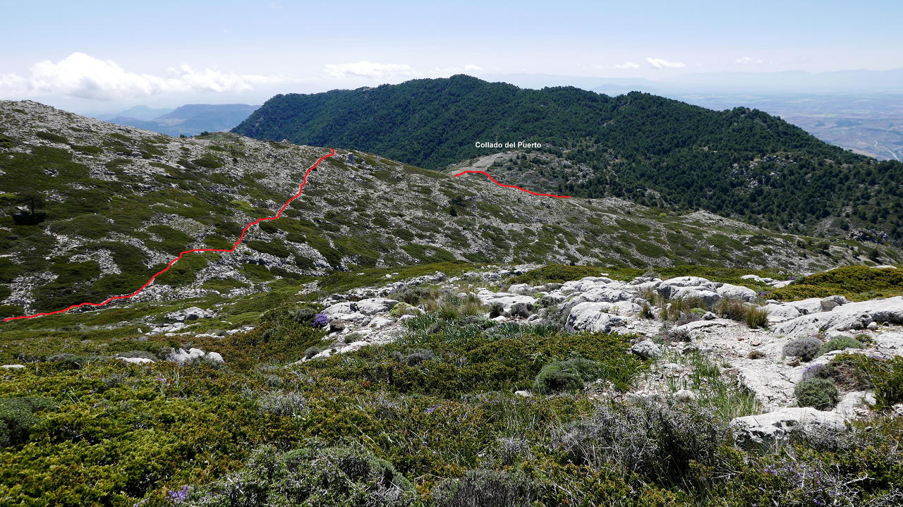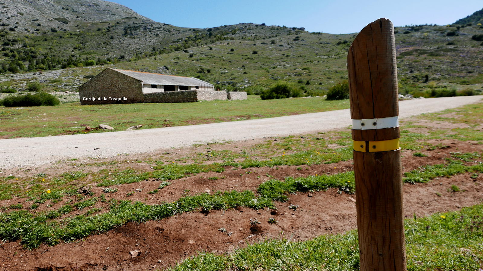 Descripción de la ruta: Cortijo de la Tosquilla (1615m), situado en un amplio llano. Continúo por la pista encontrando una bifurcación a la izquierda que indica «Prados de Mata-Bejid» (1640m oho4′). Sigo dirección al pico Mágina. La pista termina repentinamente y se inicia el sendero (1725m 0h20′) que asciende suavemente con señales amarilla y blanca (PR-A-462) hasta el colado del Puerto (1787m 0h26′) donde también hay carteles.