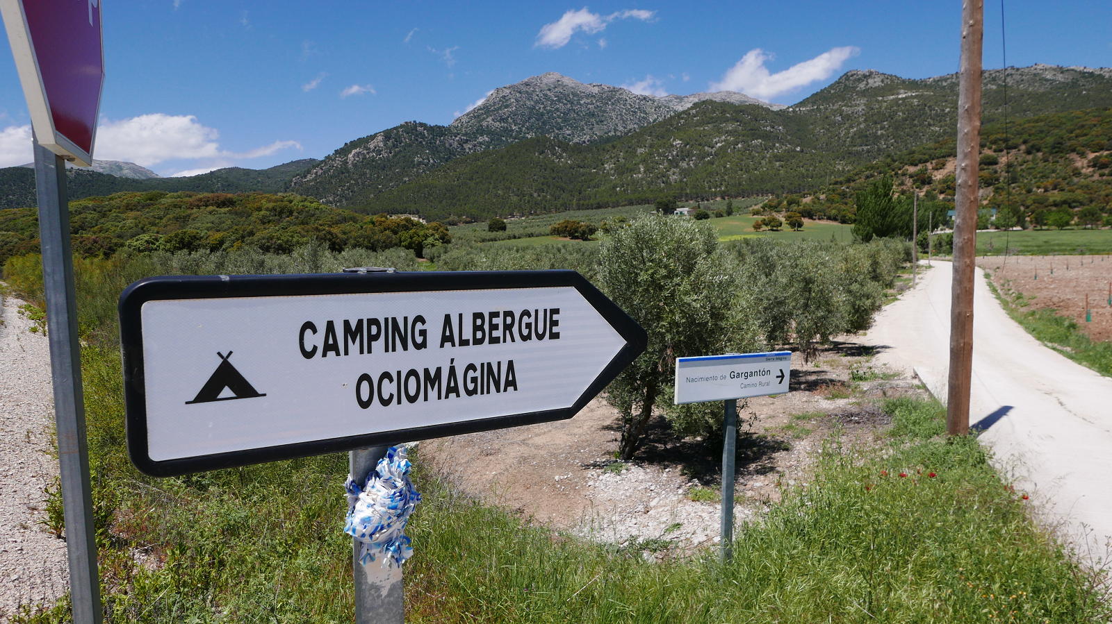 Acceso: En la carretera A-324, de Cambil a Huelma, entre el KM17 y 18, sale una pista con el cartel «Camping Albergue Ociomágina» y «Nacimiento del Gargantón» (cerca está la ermita de la Fuensanta). Avanza entre campos de olivos hasta un cartel que pone prohibida la circulación. Por suerte baja un coche y pregunto al conductor si se puede seguir; me dice que solo está prohibido el paso en verano, menos mal porque son unos 7km de pista. la pista avanza junto a cortados bastante vertiginosos pero el firme está en muy buen estado. Aparco junto al cortijo de la Tosquilla (este lugar también se llama Cañada de las Cruces), aunque se podría seguir en coche 1.5km más hasta el final de la pista.