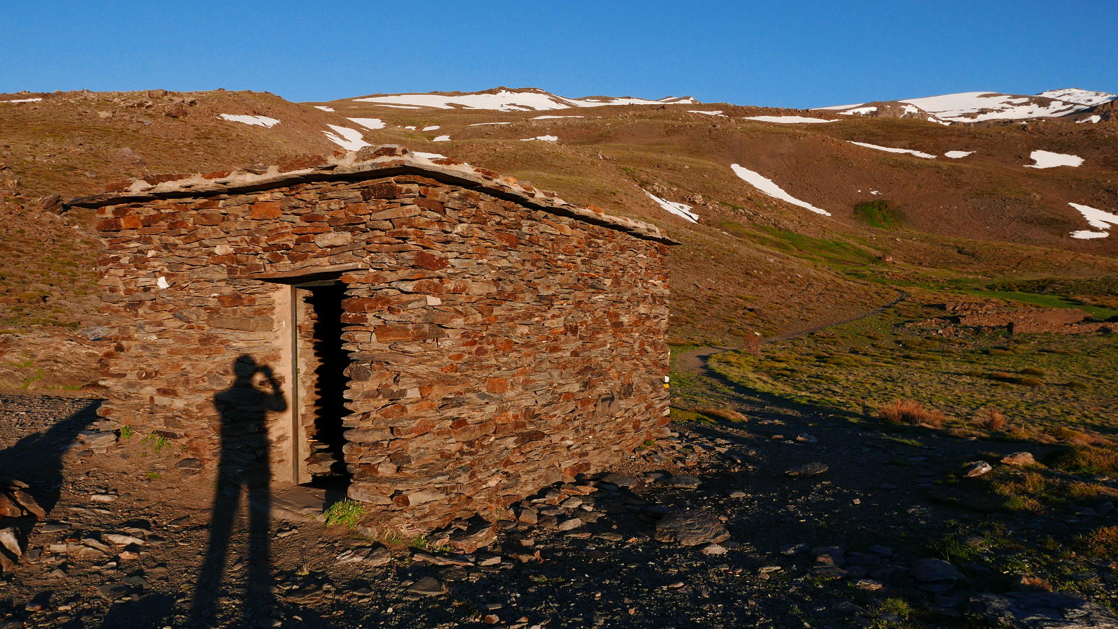 Se entra en zona de pinar (2065m 1h20′), de nuevo carteles indicadores. Saliendo del pinar atravieso la Acequia de Mingo (2390m 1h52′) y justo después está el pequeño refugio de la Campiñuela, donde me entretengo un momento con un argentino que ha dormida allí. Estoy en terreno de prados abiertos.