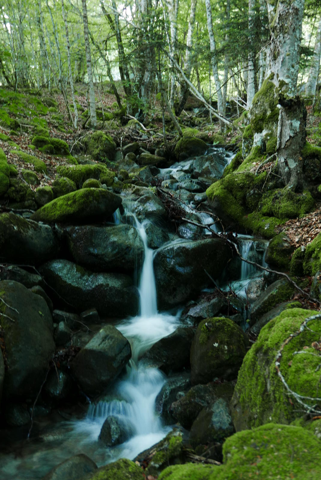 Descripción de la ruta: Aparcamiento de Bareilles (1110m). Salgo por la pista de la derecha e inmediatamente se toma un camino a la izquierda. Es un camino sombrío por el hayedo y en buena parte está enlosado, lo malo es que las losas de piedra resbalan bastante. Circula por la orilla izquierda del ruisseau de Lastie, evitando la pista. Es un camino precioso que va sorteando varios riachuelos que desembocan en el Lastie. Está balizado con placas metálicas con el número 18 y se denomina chemin de Sarradaus. Finalmente salgo a la pista y la recorro por 1km aproximadamente.