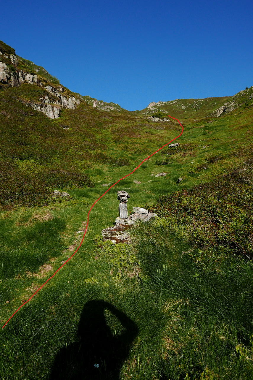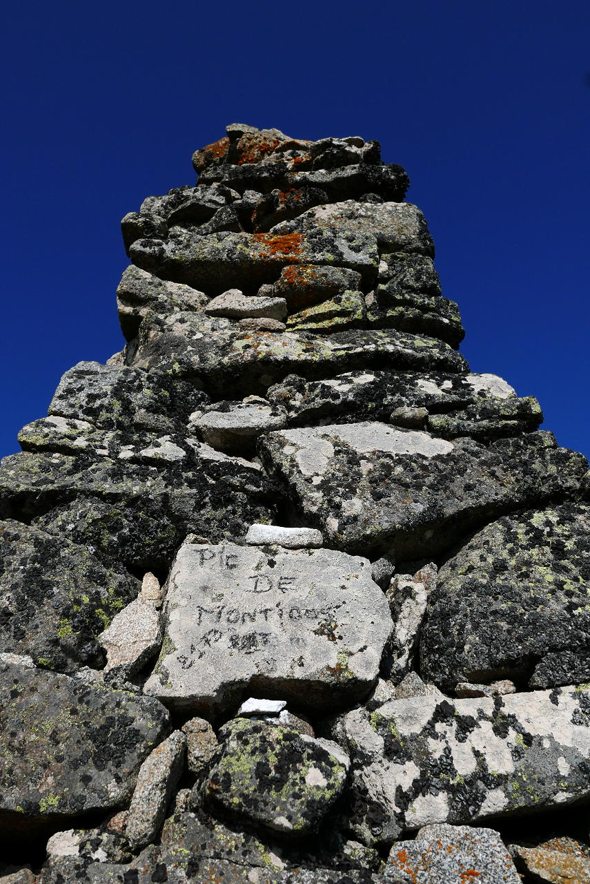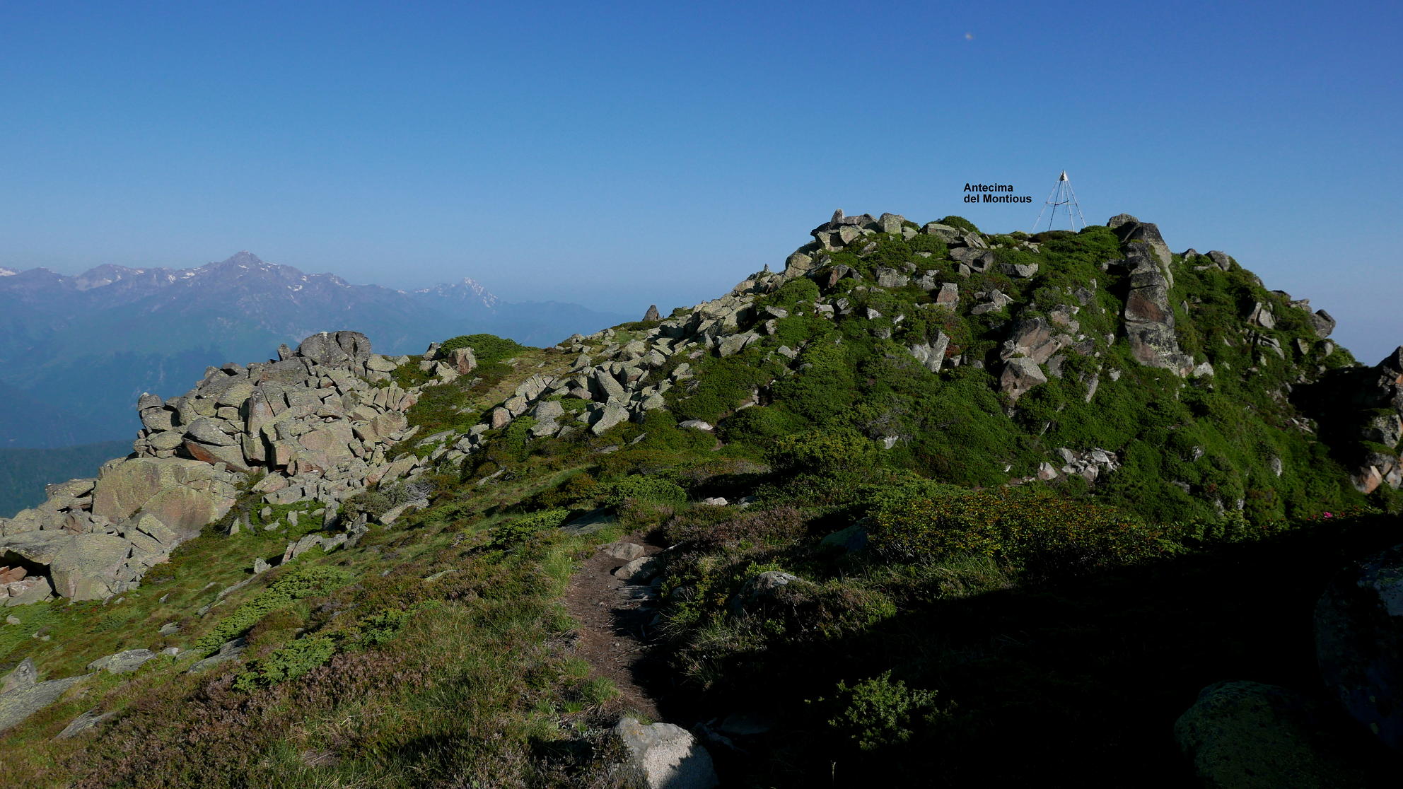Desde el lago haré una ruta circular. Asciendo por una senda que deja el lago a la izquierda (orilla NW) y avanza por el fondo de un valle en dirección oeste hasta un collado que no tiene nombre (collado sureste del Montious 2095m 2h02′). La traza de senda sigue a la derecha (NW) superando una cota en la que hay que apoyar un par de veces las manos. Tras dicha cota se alcanza un gran vértice geodésico apoyado sobre 4 patas metálicas y, un poco más allá, el pico Montious (2173m 2h20′). Las vistas son espectaculares.