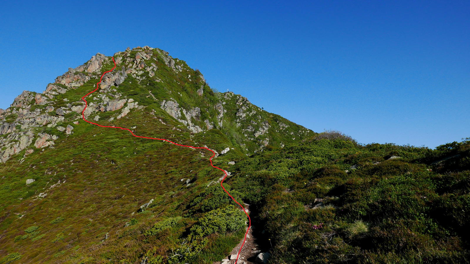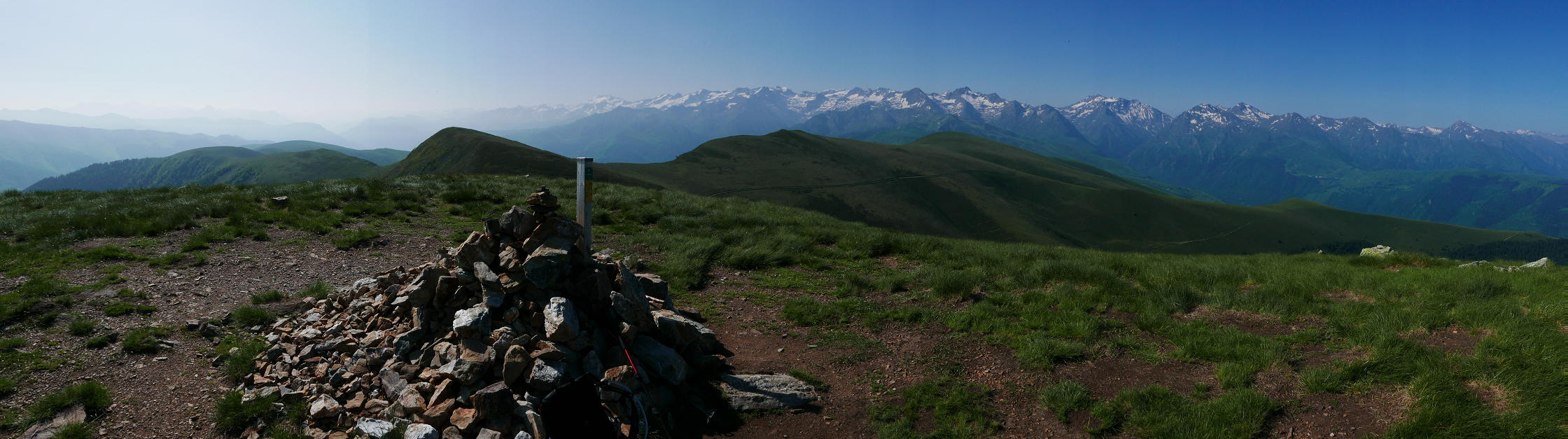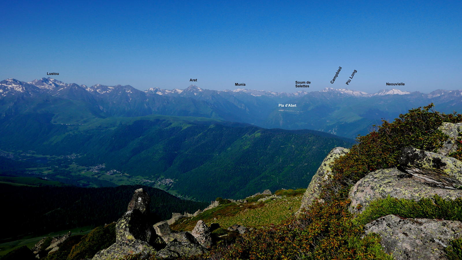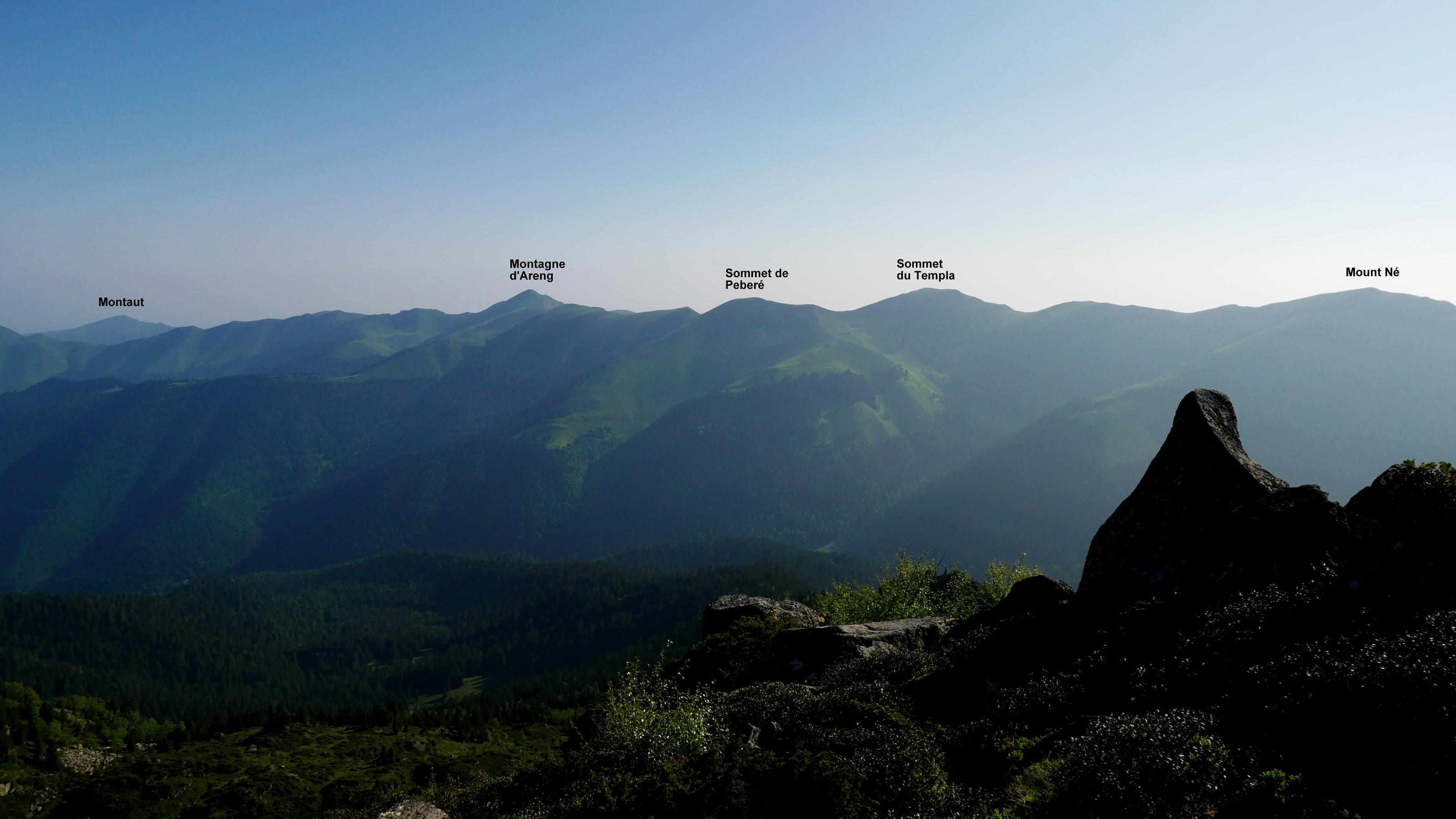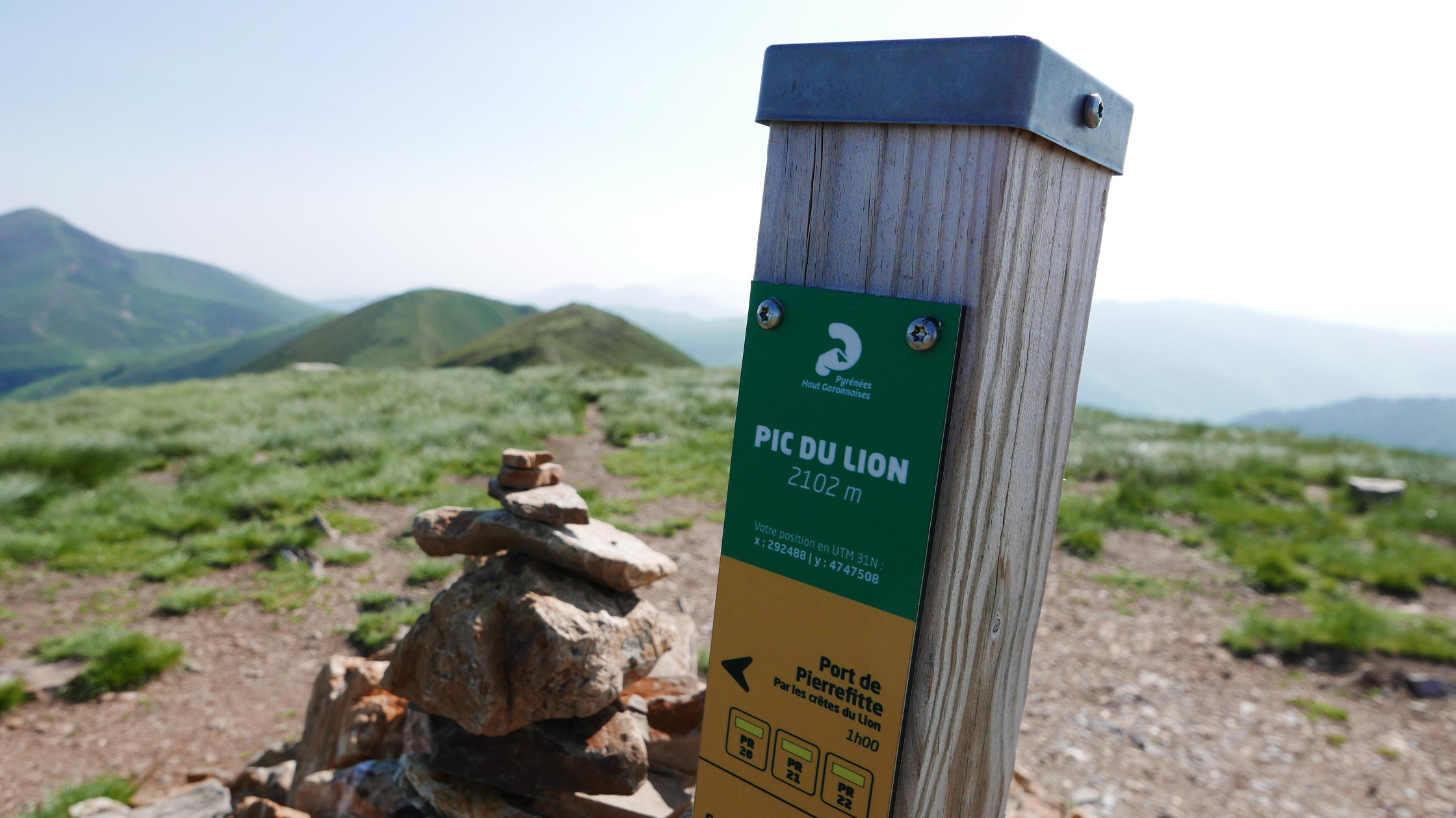 Regreso al collado SE (2095m 2h52′) y continúo por la cresta o un poco por la vertiente sur (derecha) subiendo el Sommet de Jambet (2121m 3h00′) y el Sommet du Tech (2138m 3h10′) dos cotas secundarias que no tienen ninguna dificultad. Ahora un descenso más pronunciado al col du Lion (2031m 3h20′) y una última subida más potente, pero siempre por traza de senda, al Pic du Lion (2102m 3h27′), que marca el vértice entre la cresta del Montious y la cresta del Mont Né.