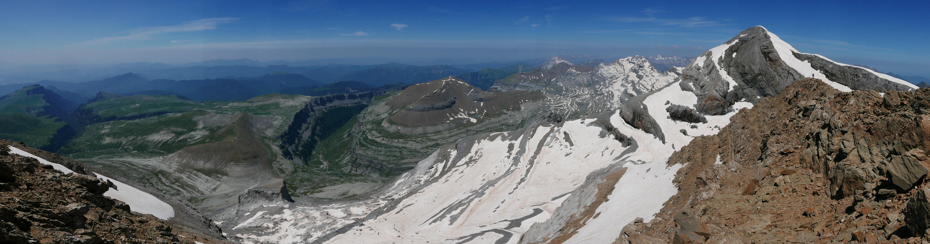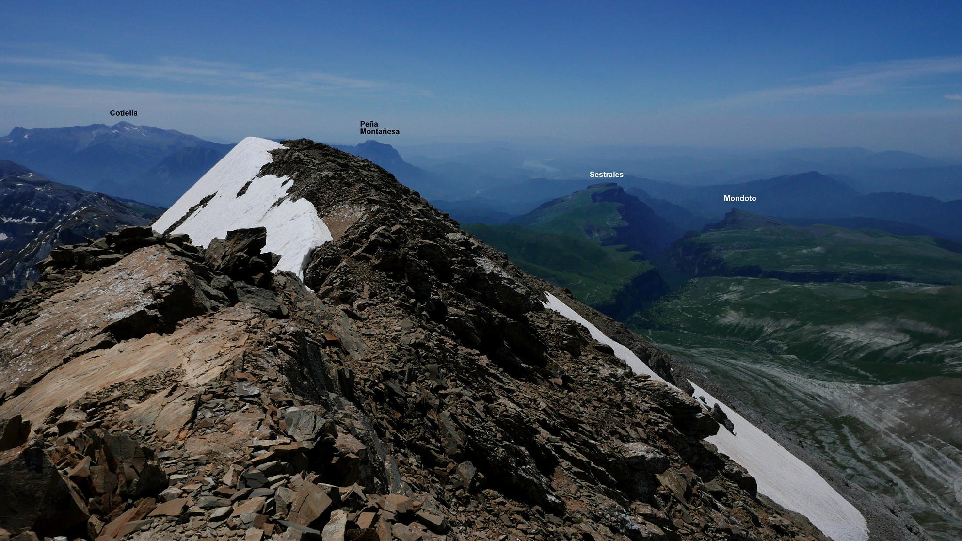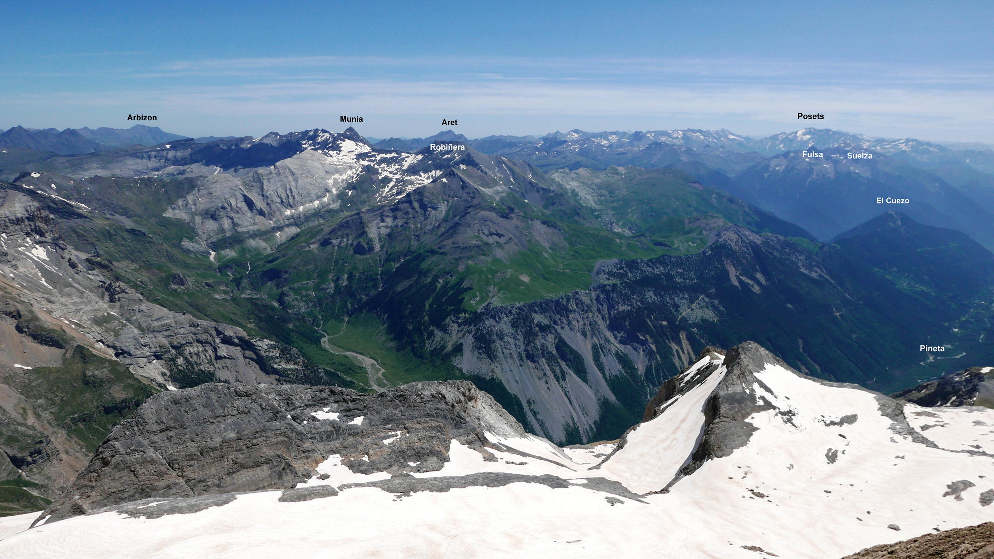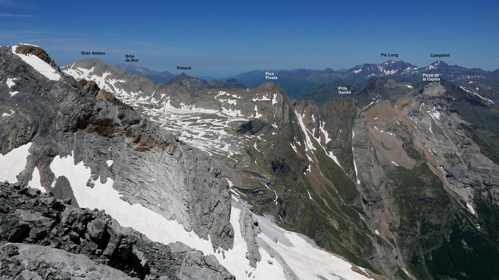 Larga y dura excursión a los picos que se sitúan al SE de Monte Perdido: la Punta de las Olas y el Soum de Ramond (que ahora se llama pico Añisclo), añadiendo de paso un tercer pico, el Baudrimont SE o Punta Tormosa. Completamos así 3 tresmiles, todos ellos con muy poca prominencia pero con un ambiente alpino y unas vistas incomparables.