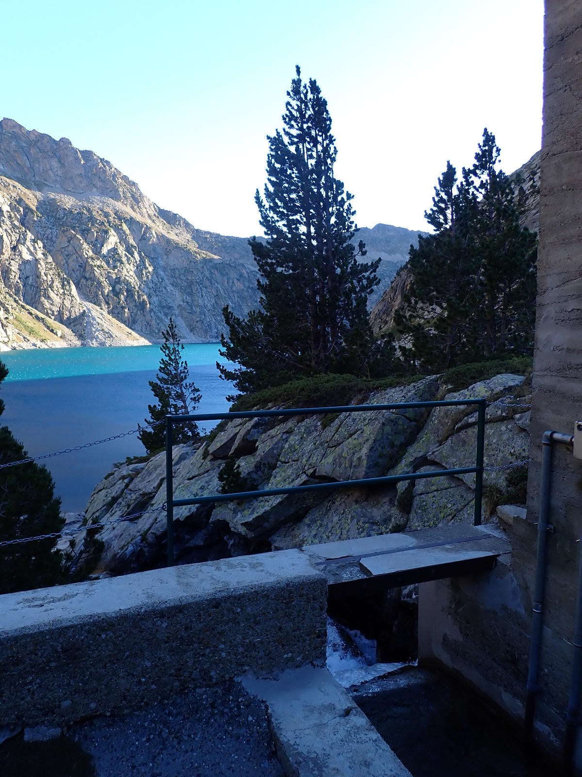 Descripción de la ruta: Presa de Cap de Long (2170m). Se continúa por el camino que va bordeando el lago Cap de Long por el sur. Nos pasamos el desvío que deberíamos tomar a la derecha, así que avanzamos un poco más antes de desviarnos (2270m 0h53′) para bajar a cruzar el río Cap de Long (2160m 1h03′) en el punto en que desemboca en la cabecera del lago, donde hay una estación de aforo que permite atravesar el cauce.