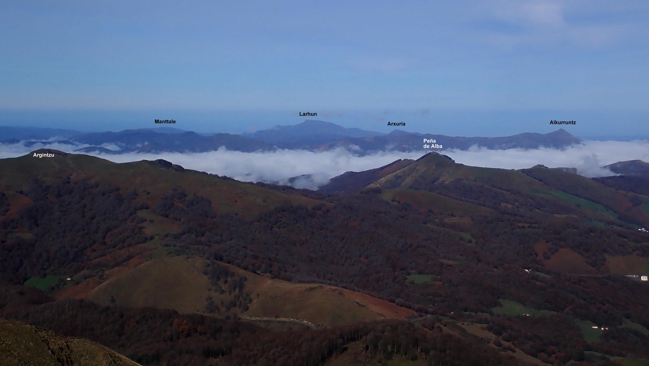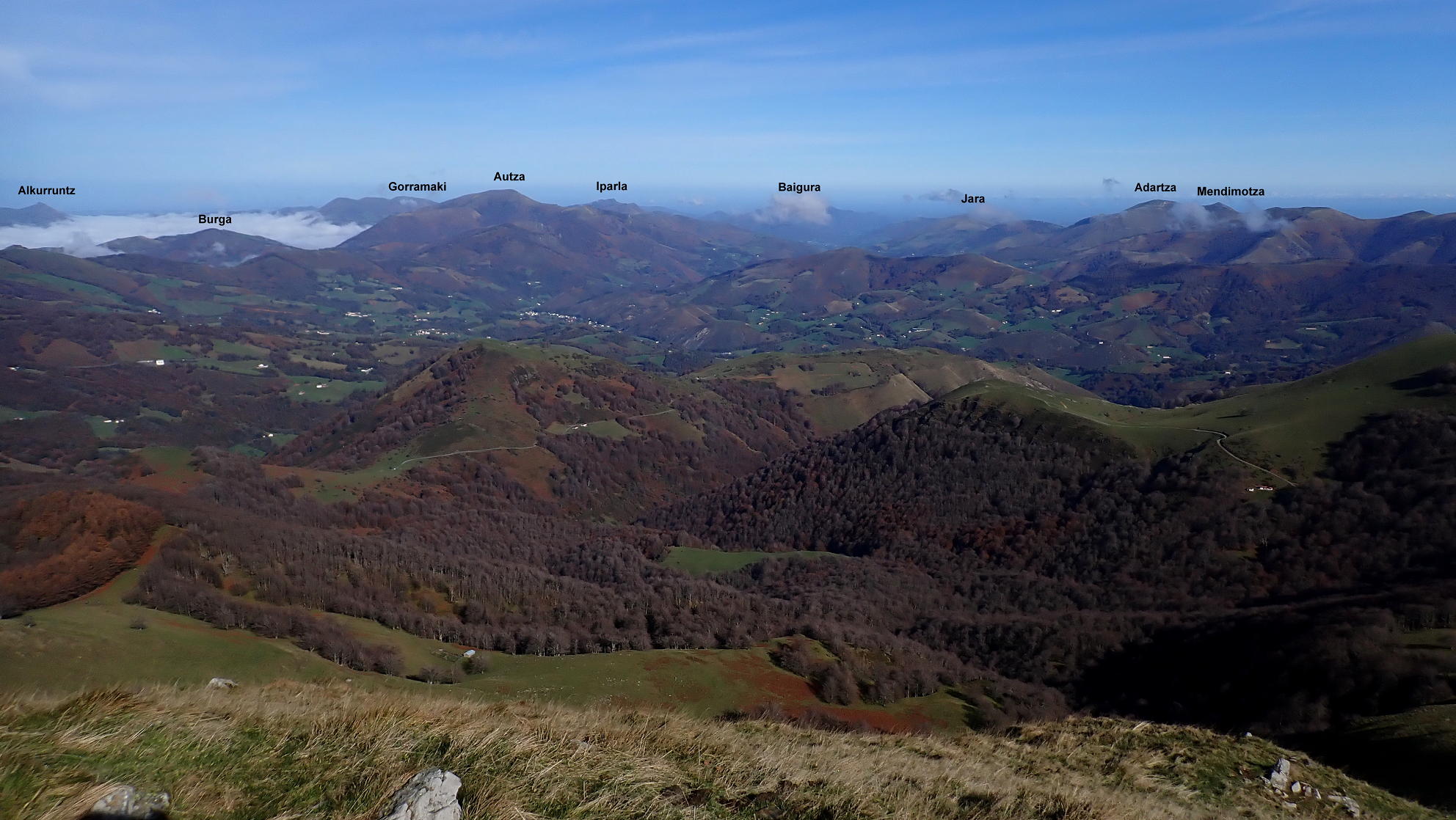 El descenso lo hacemos por el mismo camino al puerto de Urkiaga (912m 3h05′)