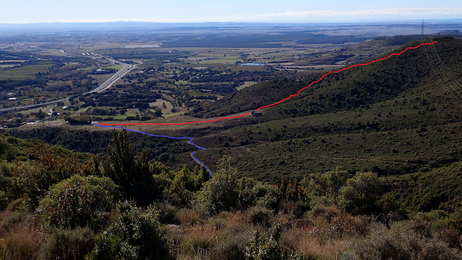 La subida, como decía, se desarrolla por sendas algo cerradas (pantalón corto totalmente desaconsejado). La bajada, en cambio, por caminos y sendas mucho más cómodos y claros.