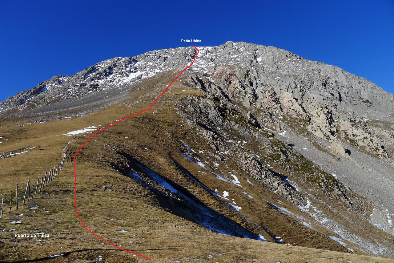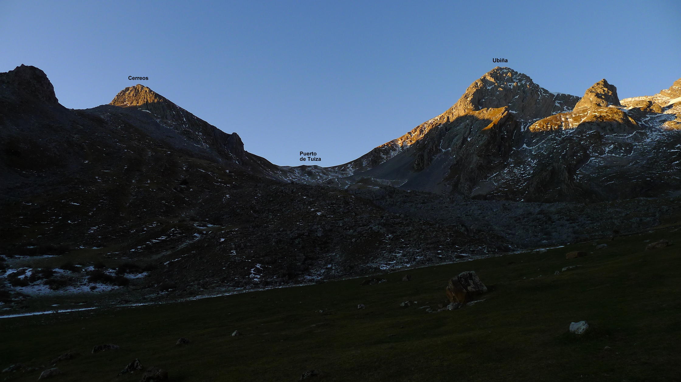 El descenso se hace bastante rápido y la mayor dificultad van a ser los lomos de hierba por los que bajo desde el collado hasta el refugio. En vez de volver a ir por las laderas sombreadas de la subida desciendo por unos lomos centrales más soleados, pero la hierba sigue estando helada y hay que tener un cuidado tremendo para no pegarse un buen resbalón. Del refugio hasta el coche ya no hay ningún otro problema. Tuiza de Arriba (1210m 5h03′)