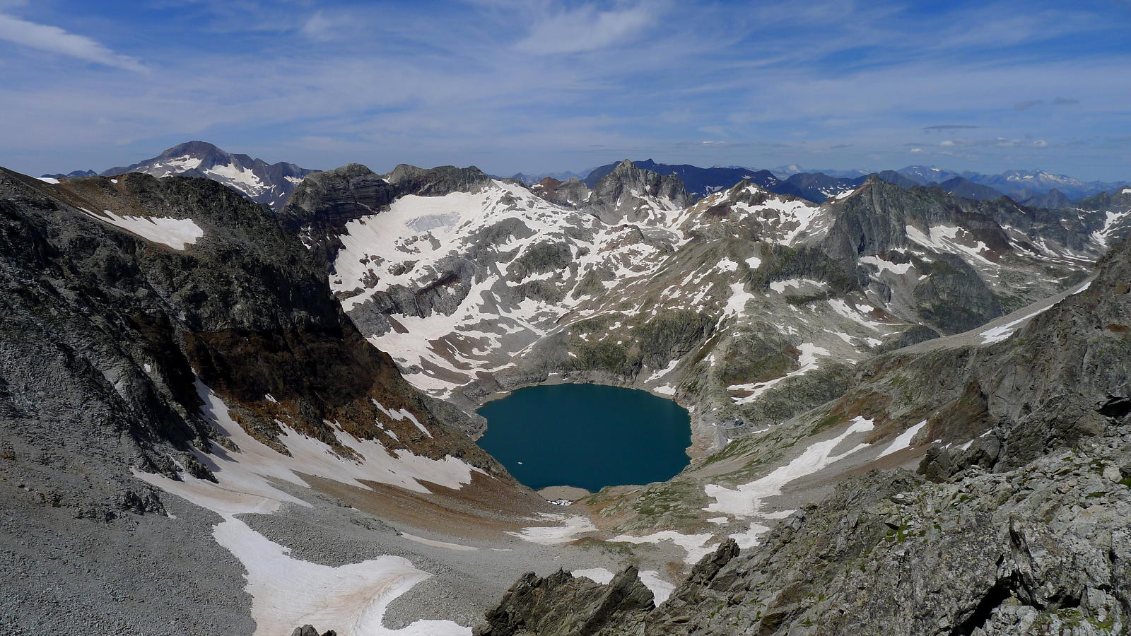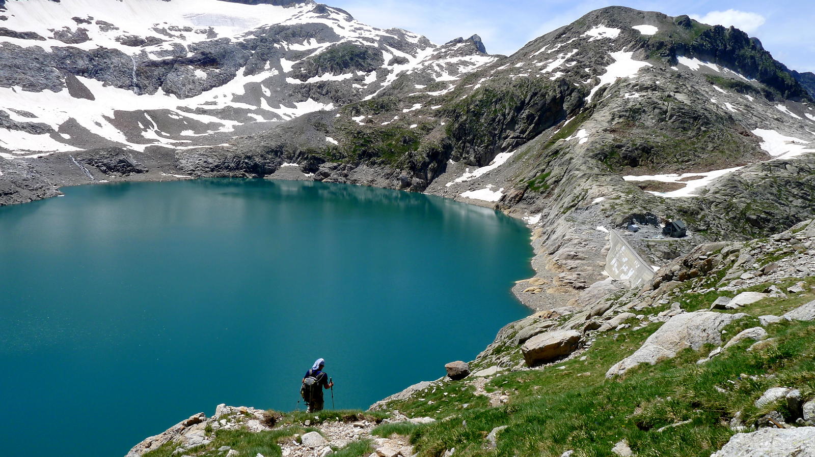 Al salir del refugio se atraviesa la gran presa del lago del Portillon. Un camino cortado en la roca sale hacia la derecha y enseguida va ascendiendo por la ladera de hierba de nuestra izquierda. En un giro a la izquierda dejamos la senda que sigue de frente hacia el valle de Literola y el Perdiguero, mientras nosotros nos introducimos en el valle Inferior de Literola, el primero que se mete hacia el E bajo la pared S del pico Lezat.