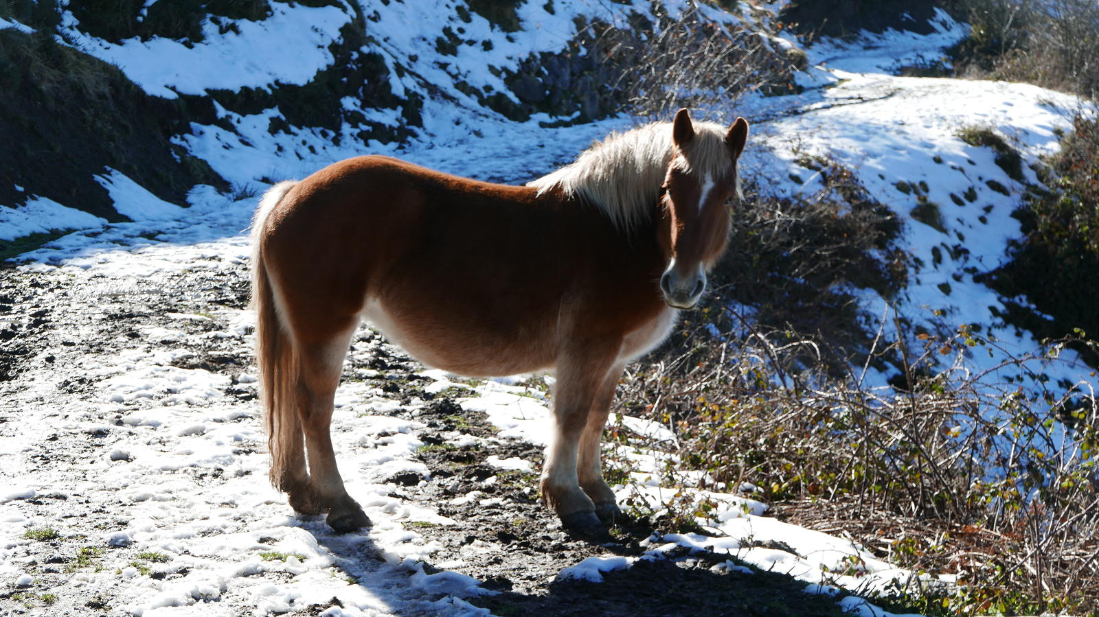 Bajo por la pista que desciende hacia el norte, atajando todas las curvas que puedo, ya que al estar el terreno nevado se puede atajar perfectamente. En los lagos de la Cueva se gira a la izquierda (oeste) y se desemboca en una pista más principal (1460m 2h57′) que baja hacia el sur, hacia el punto donde dejé la pista en la subida. Ahora ya sigo el mismo camino de la subida hasta el aparcamiento (1145m 3h51′)