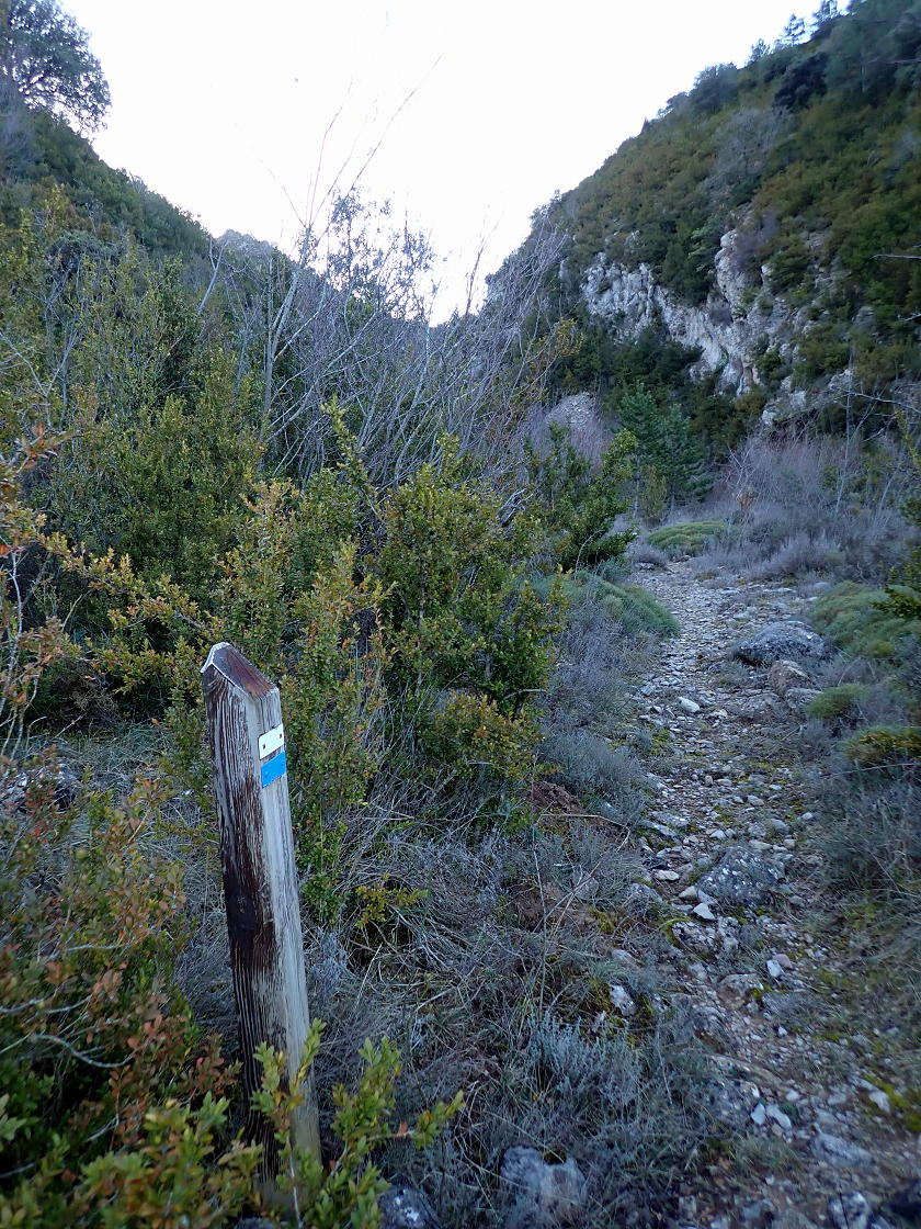 Es una senda pedregosa que adquiere pendiente, a cierta altura sobre el cauce en su orilla izquierda. Al final se abre y se suaviza llegando a una amplia zona donde hay un área con bancos en la que confluyen varios caminos y pistas y está el pozo de hielo (1255m 1h15′).