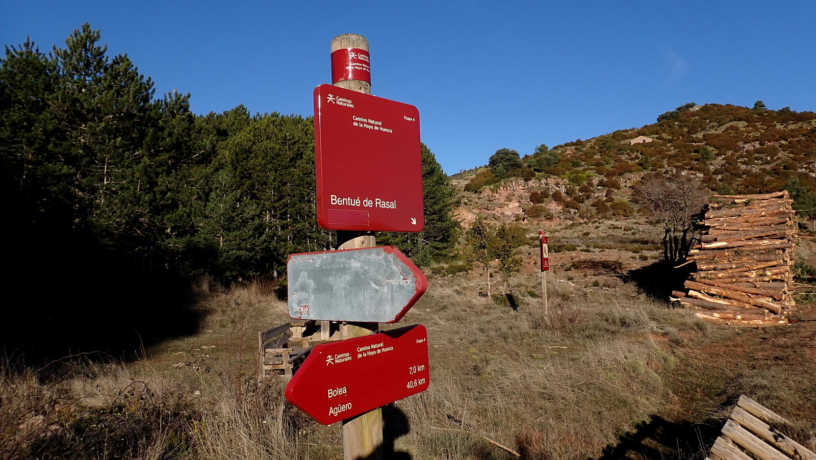 Acceso: En la A-23 de Huesca a Jaca, salir hacia Arguis, atravesar el pueblo y, cuando empieza la subida a Mesón Nuevo, tomar la desviación a la izquierda hacia Bentué de Rasal (HU-V3001), una carretera muy estrecha que en 8km llega al pueblo de Bentué. Aparco en la plaza delante de la iglesia.